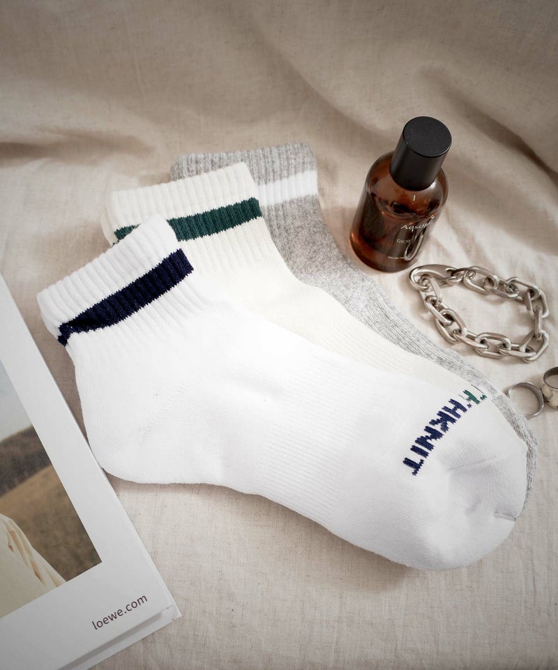 オールシーズン使えるミドル丈のソックスはスニーカーやブーツなど幅広いコーディネートに合わせやすいアイテムです。