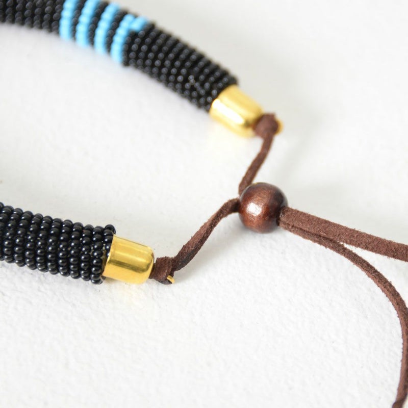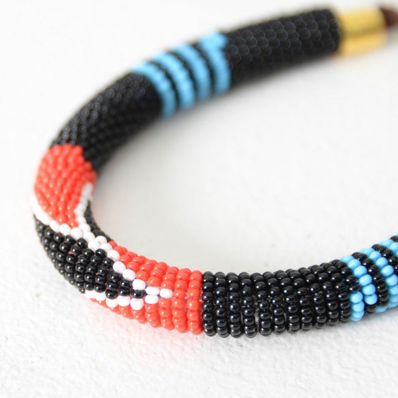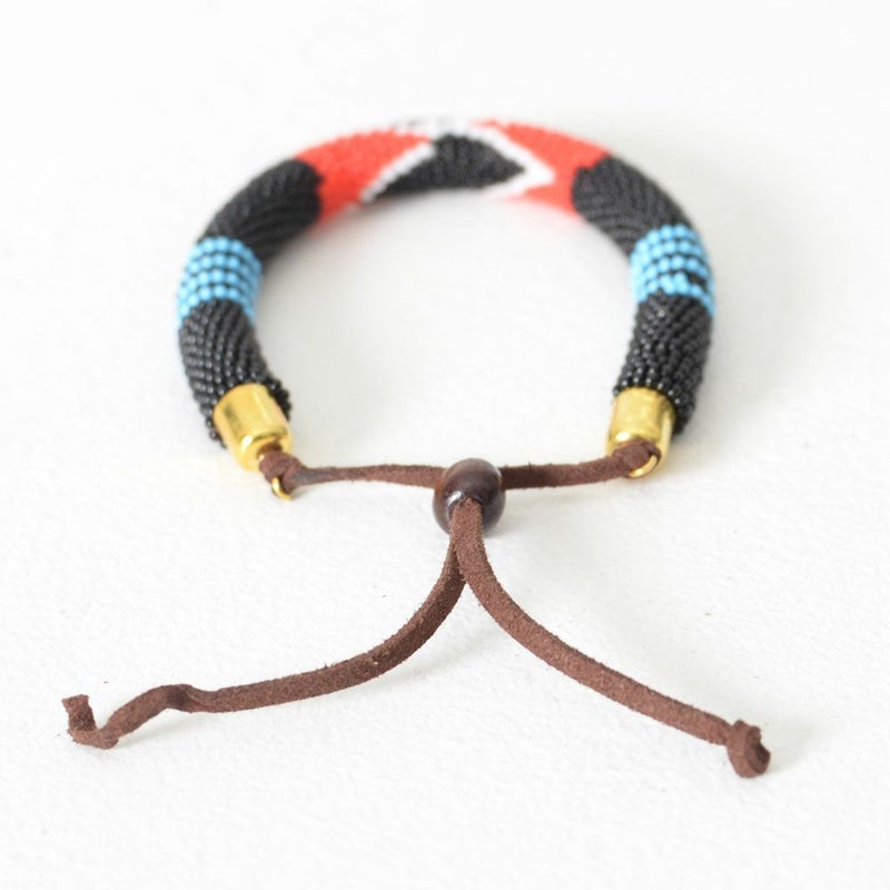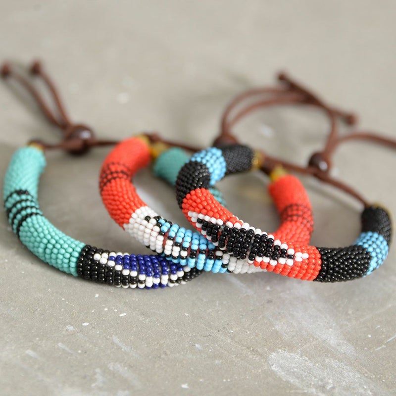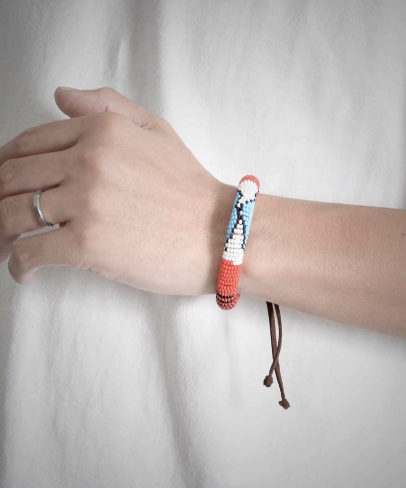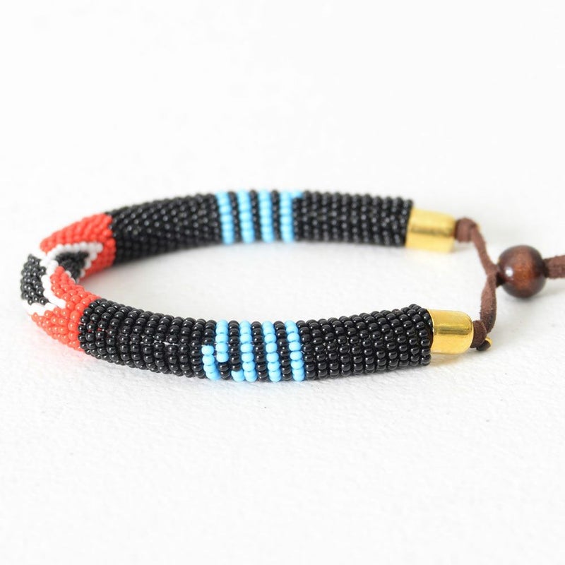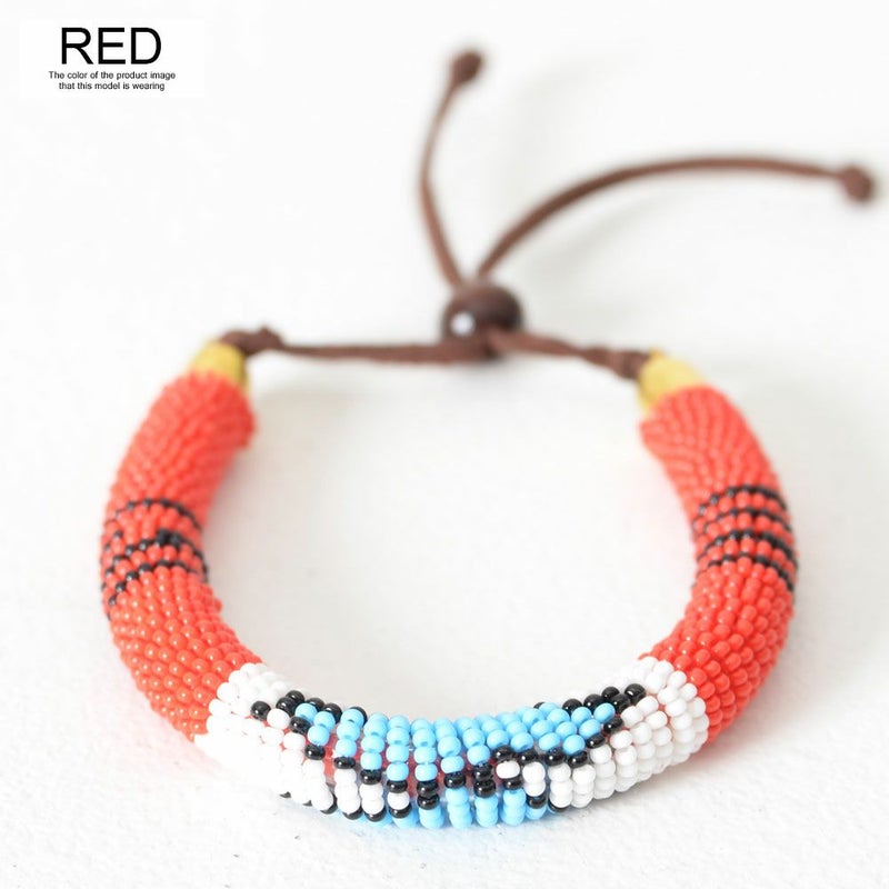 アフリカンなカラーとジオメトリックな柄のビーズブレスレット。