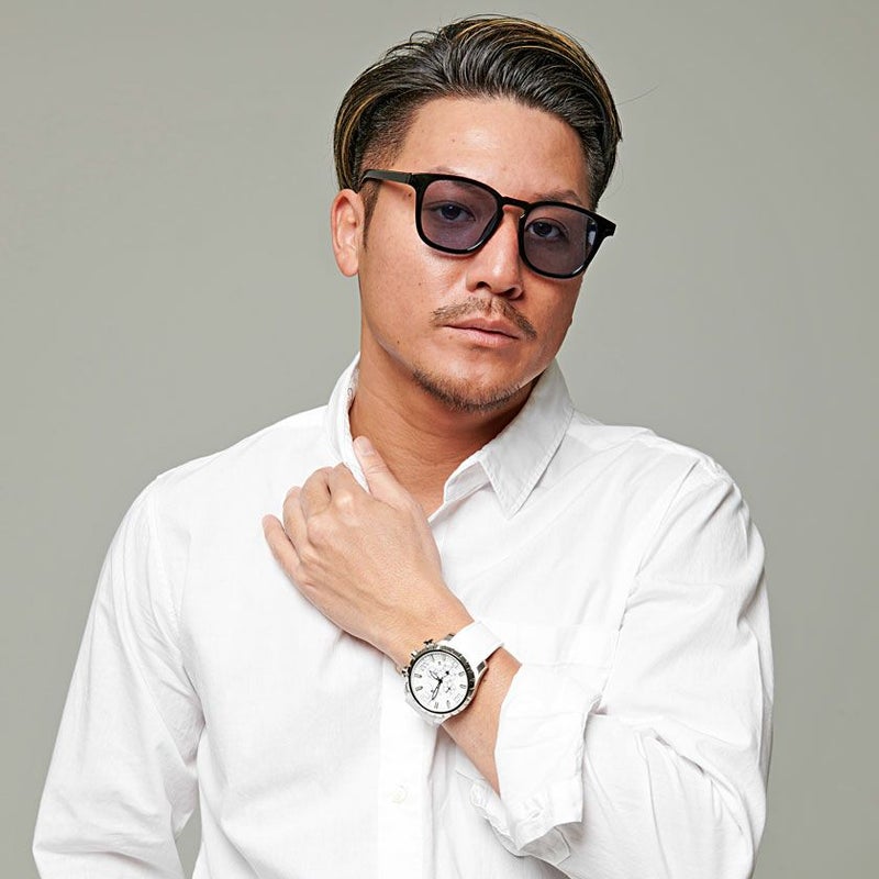 重厚感溢れるクロノグラフモデルの腕時計。