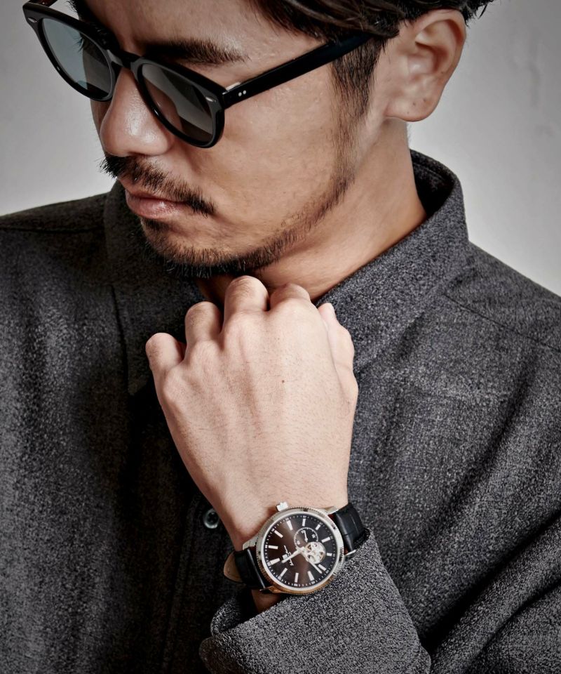 自動巻きムーブメント搭載で着用者の動きによってゼンマイを巻き上げます。