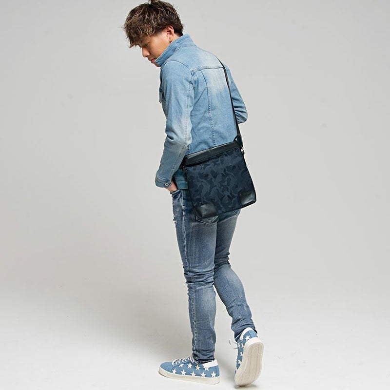 スポーティーなイメージが強いサコッシュを、さりげないカモフラージュ柄で上品かつオシャレな印象に。