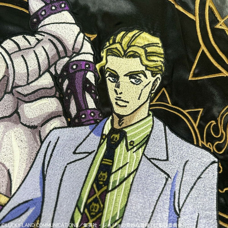 アニメ『ジョジョの奇妙な冒険』コラボより『ダイヤモンドは砕けない』シリーズが登場。昔から杜王町に潜んでいる殺人鬼【吉良吉影】と、 そのスタンド【キラークイーン】を ALL 刺繍。 Bitter select(ビターセレクト)吉良吉影スカジャン/全1色