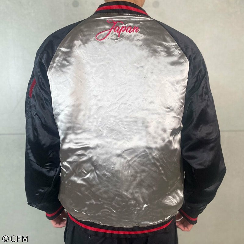 リバーシブル裏面は胸部にロゴ、背面はスカジャンらしく「Japan」の文字を刺繍。