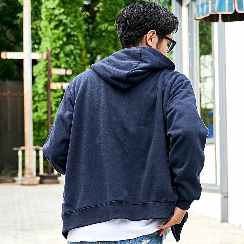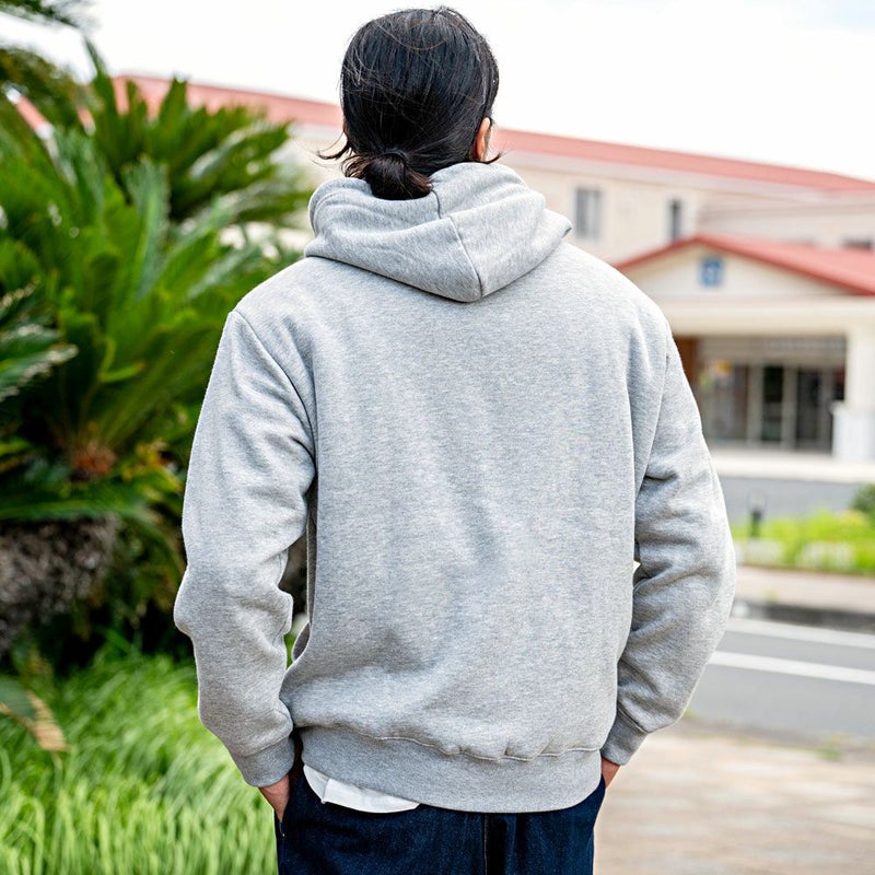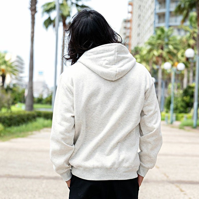 程よい厚みで弾力がある綿、ポリエステルの混紡を使用したジップアップパーカー。