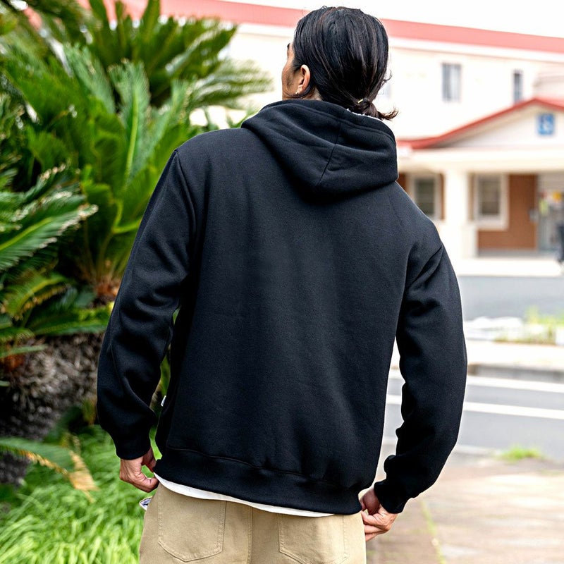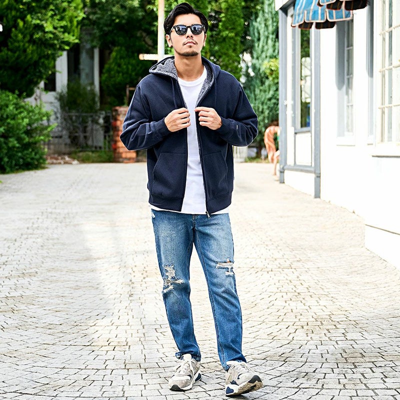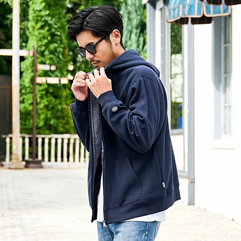 シンプルな無地のデザインで幅広いコーデに活躍できるジップパーカーです。