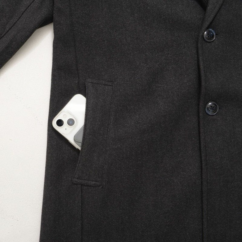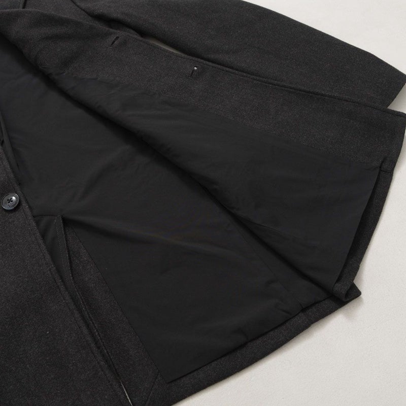 ウールのような上質な風合いを再現したハイブリットメルトン素材を採用し、上品さと軽さを両立させた一着です。