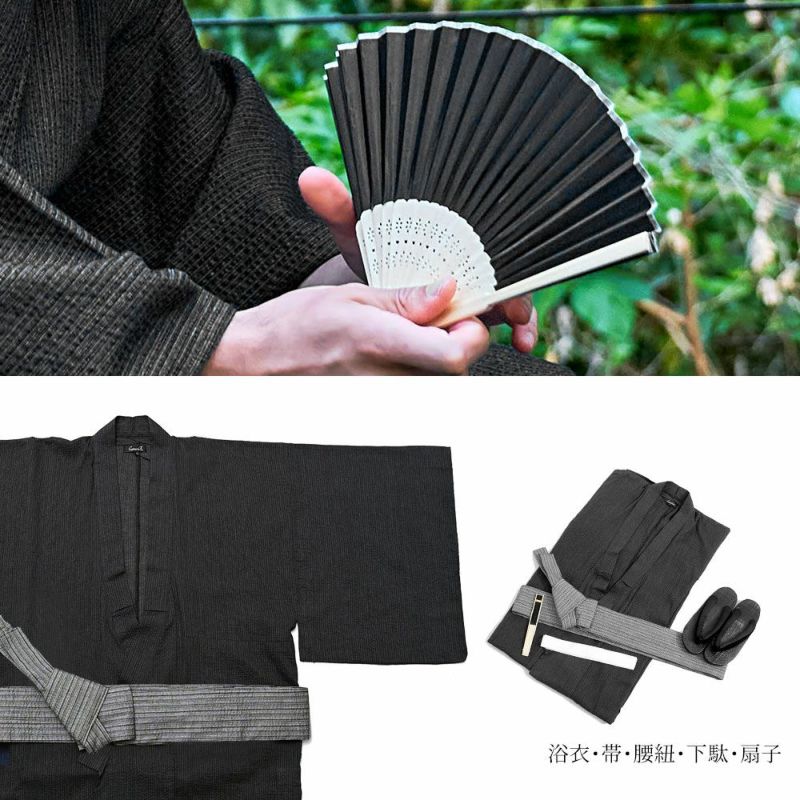 浴衣・帯・腰紐・下駄・扇子がすべて揃っており、届いたその日から粋で涼やかな夏の装いが完成します。