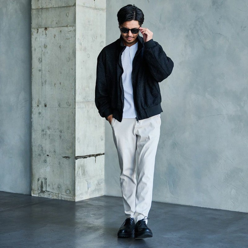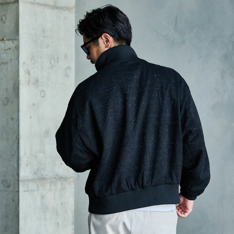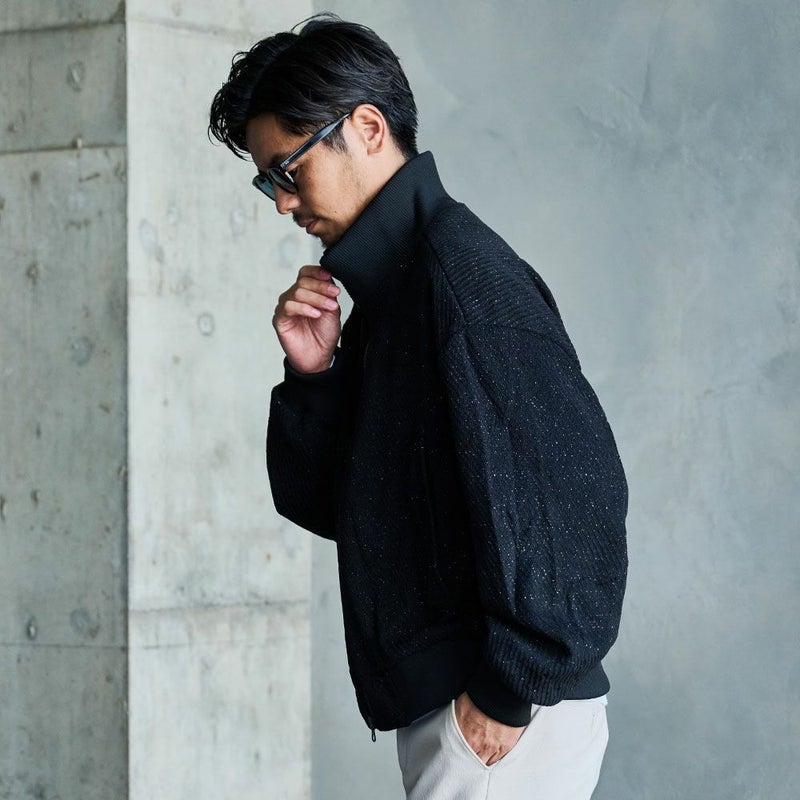 上品なラメ感をまとった独自のテクスチャーが、シンプルながらも視線を奪う存在感を放つジップジャケットです。