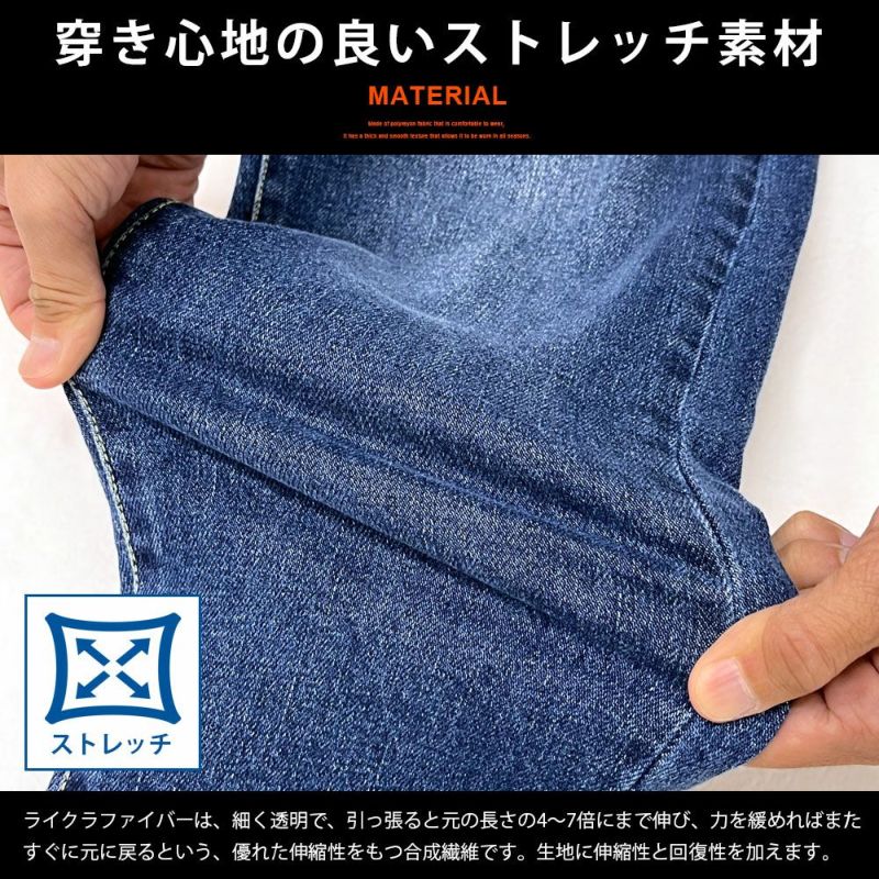 程よいテーパードシルエットにバックゴムウエストイージー仕様で、体にフィットするストレスのない穿き心地 CavariA(キャバリア)バックシャーリングデニムパンツ/全4色