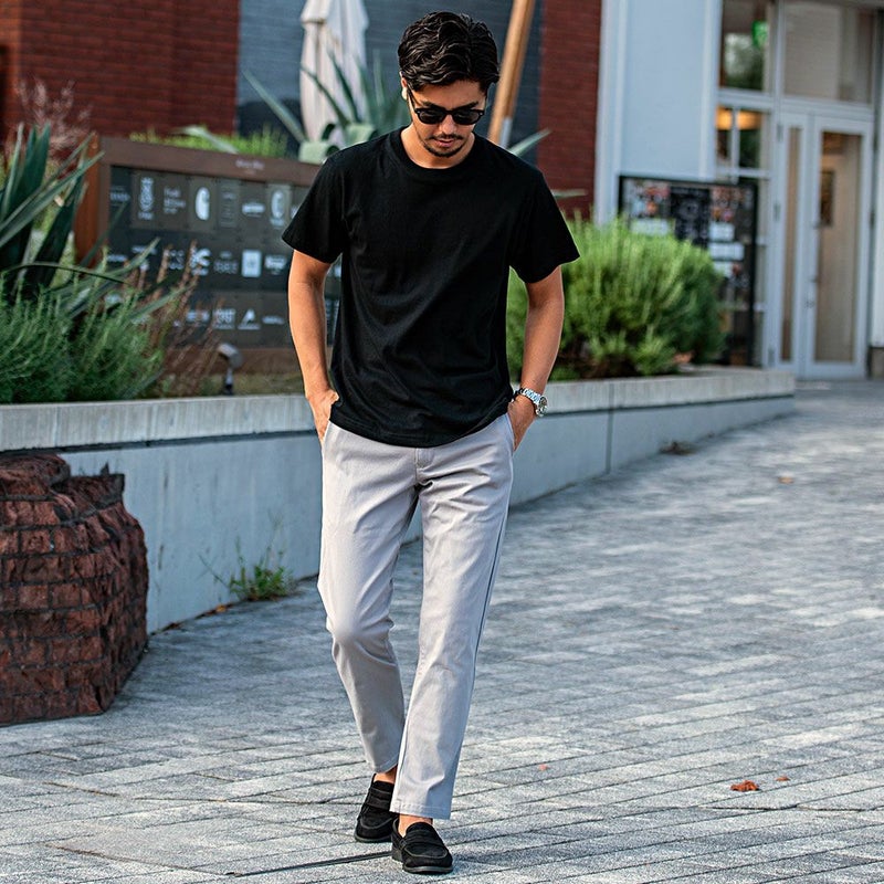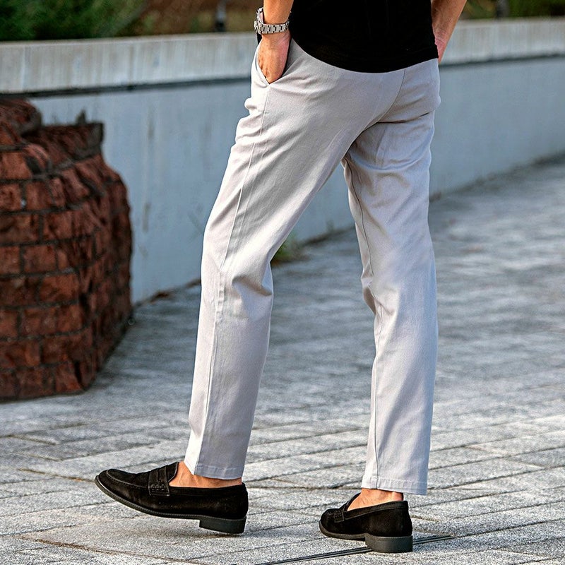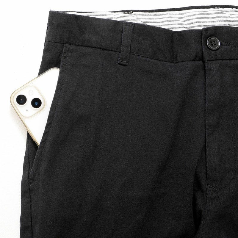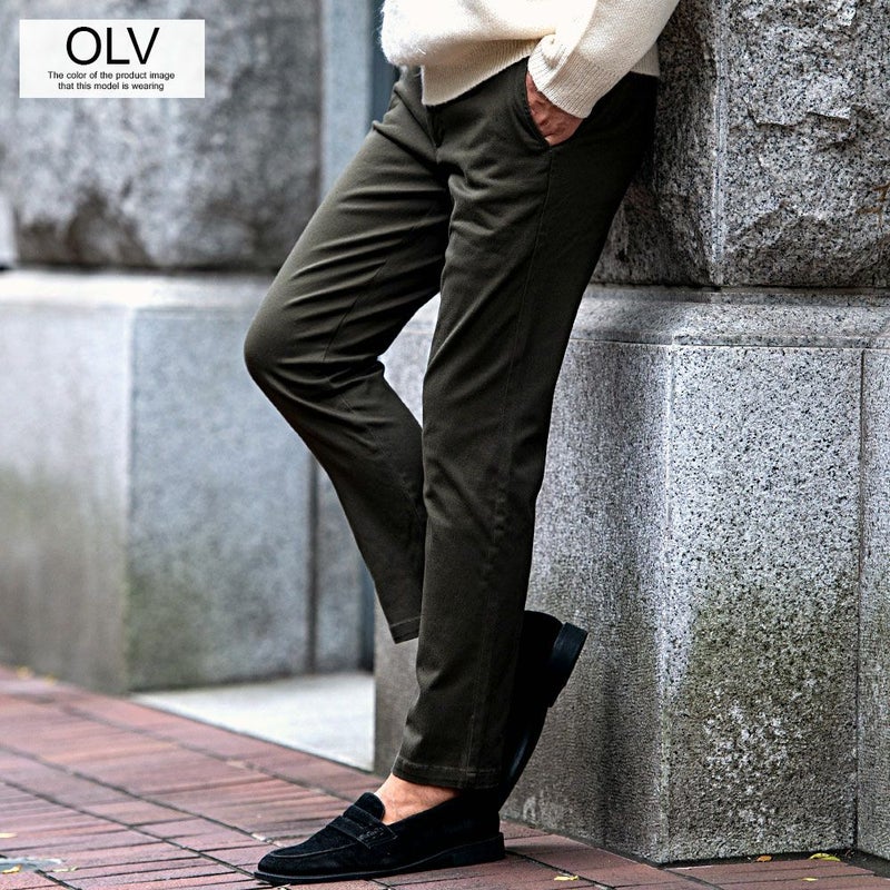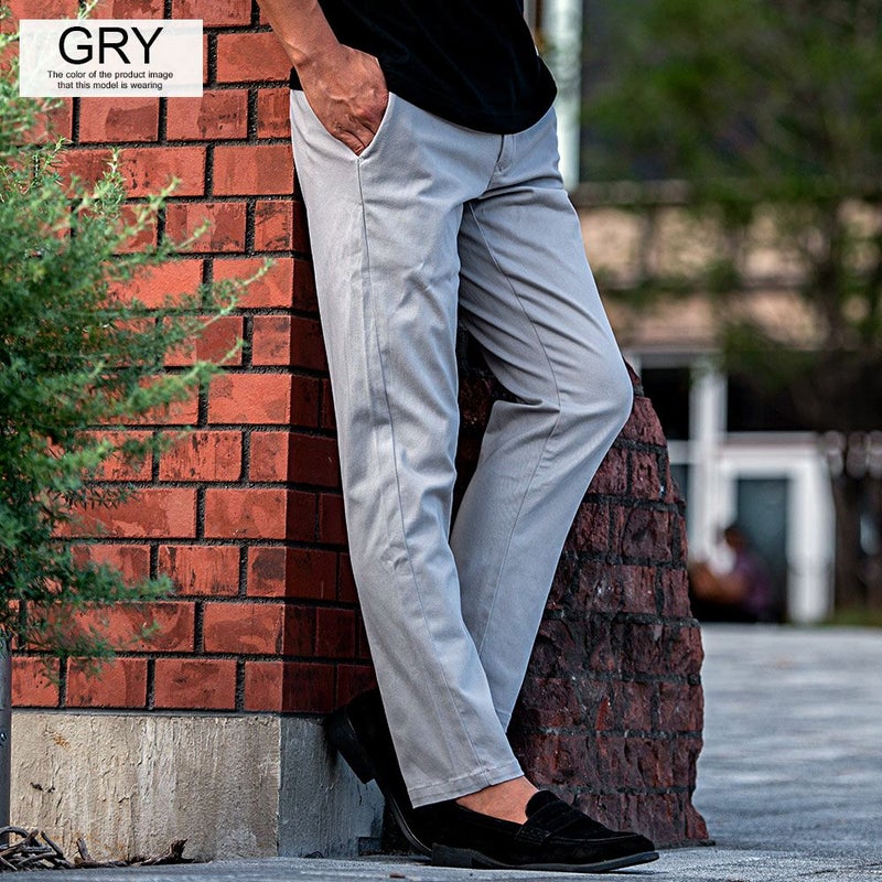 丈夫で耐久性の高いツイル素材を使用したチノパンツ。