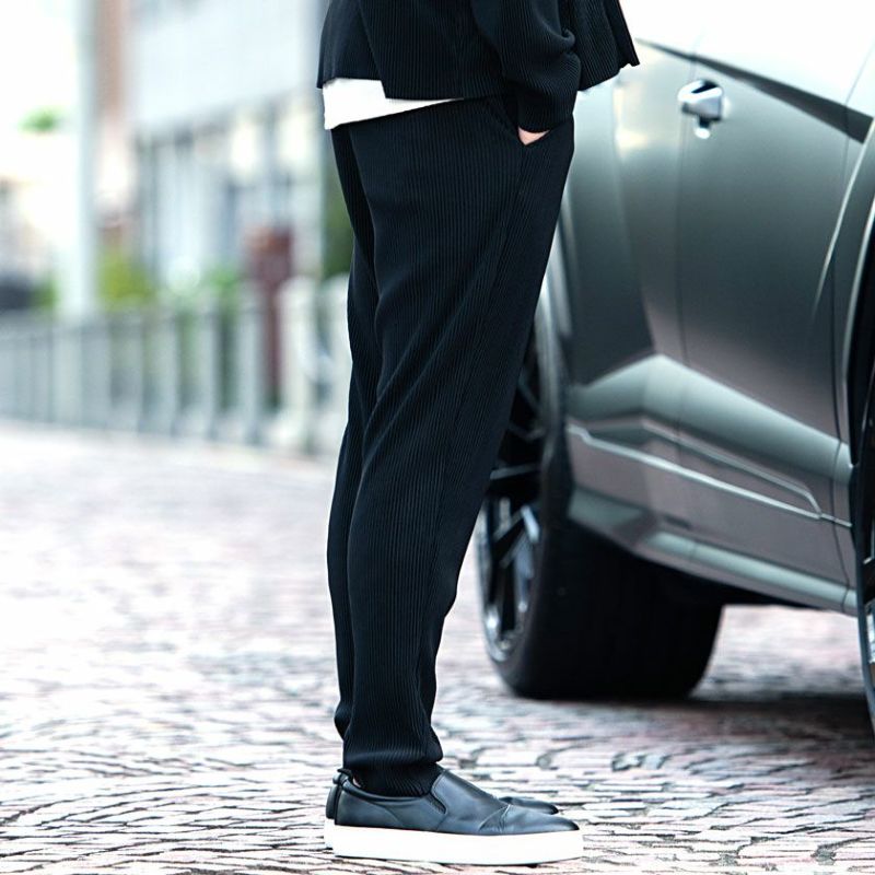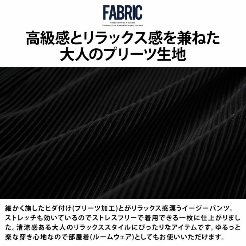 細かく施したヒダ付け(プリーツ加工)がリラックス感漂うイージーパンツ。