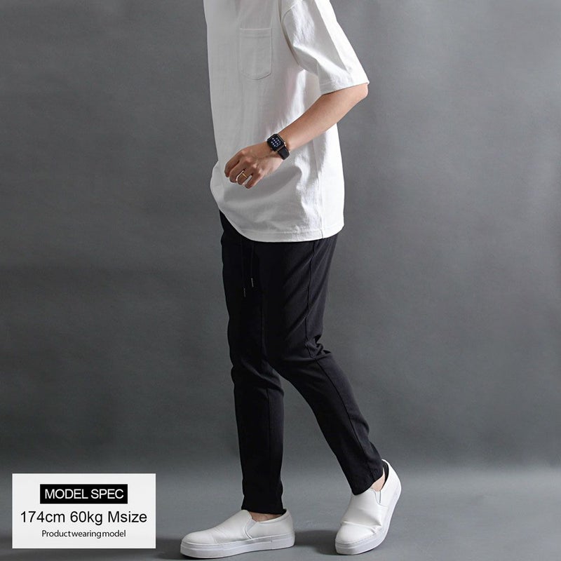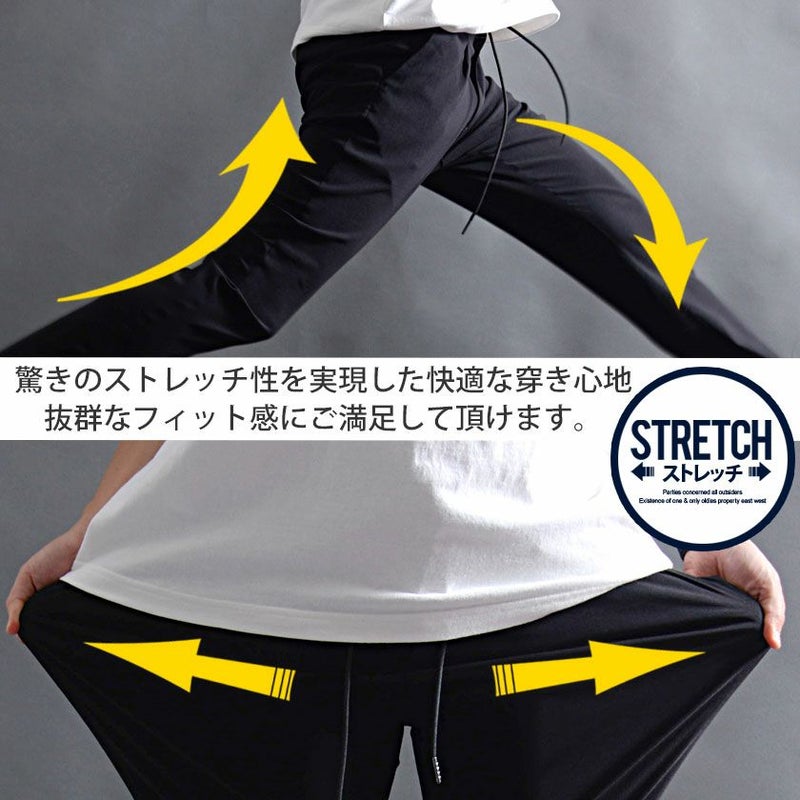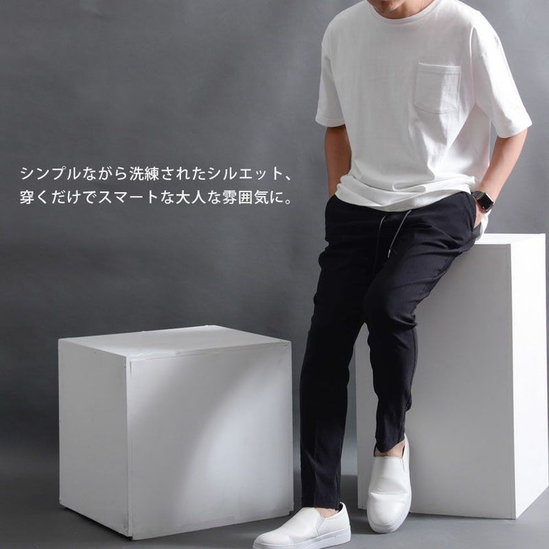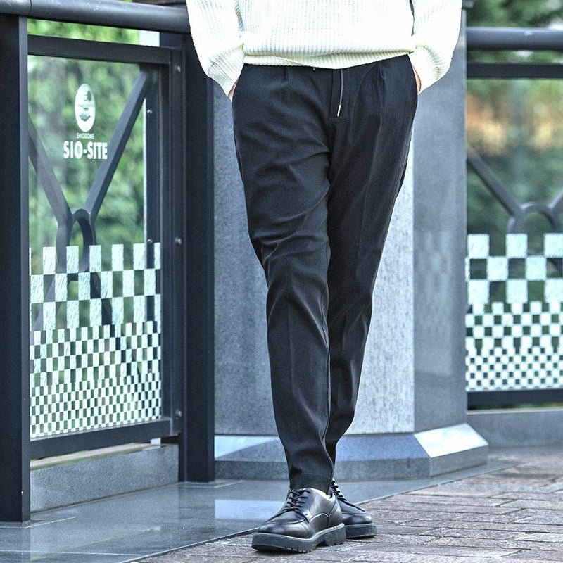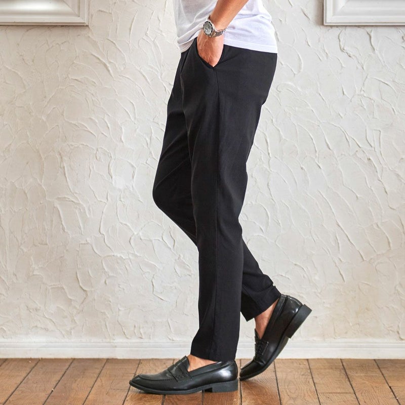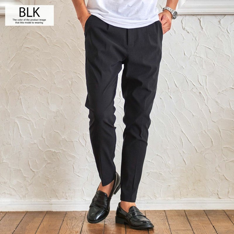 スラックスパンツでありながらャージ素材のような快適さがあり、タテヨコ自在に伸びる驚きのストレッチ性を実現した快適な穿き心地の9分丈アンクルパンツ。