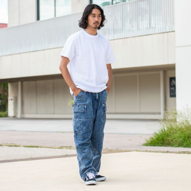 デニムパンツ メンズ ブランド おしゃれ ワイドパンツ カーゴパンツ 大人 カジュアル ゆったり ケミカル加工 ヴィンテージ ビンテージ ストリート cavariA 春 夏 秋 冬 ブルー 黒 M L CavariA(キャバリア)ケミカルワイドカーゴパンツ/全2色