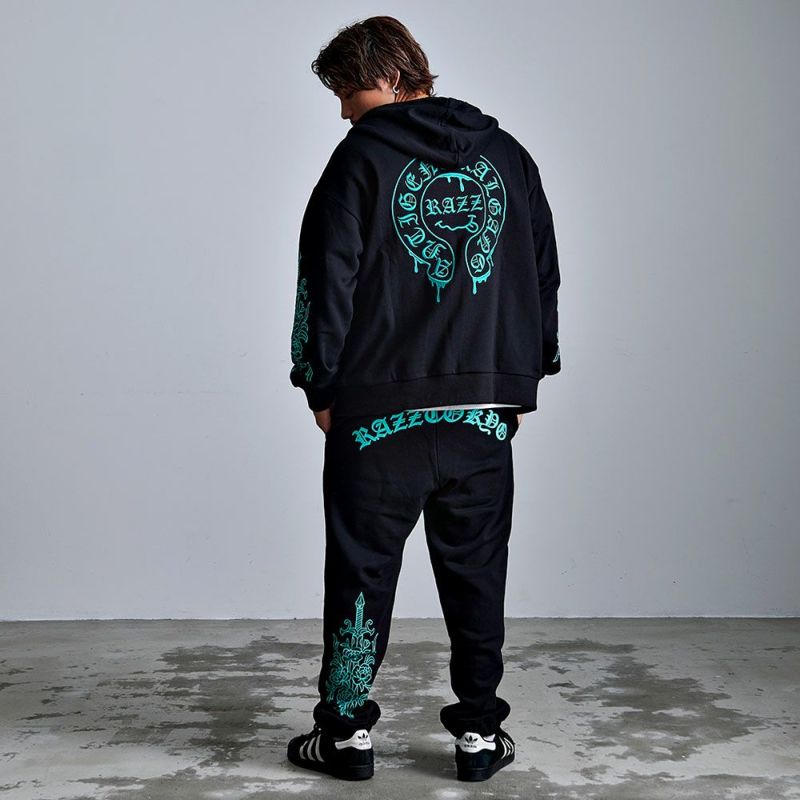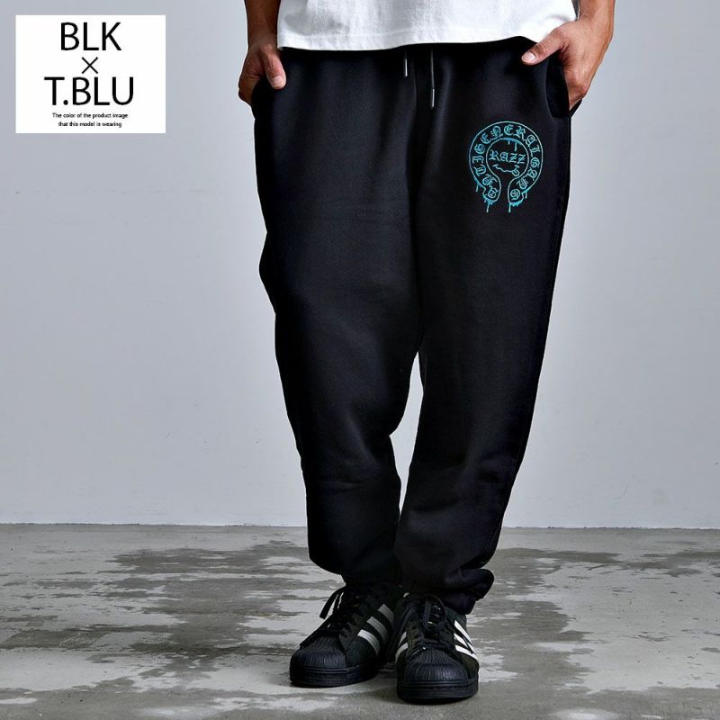 ※こちらの商品はパンツのみの販売となります。別売りのトップスと組み合わせることで、セットアップとしてもお使い頂けます。 【送料無料】RAZZIS(ラズ)ドロッピングサークルロゴ刺繍スウェットパンツ/全3色