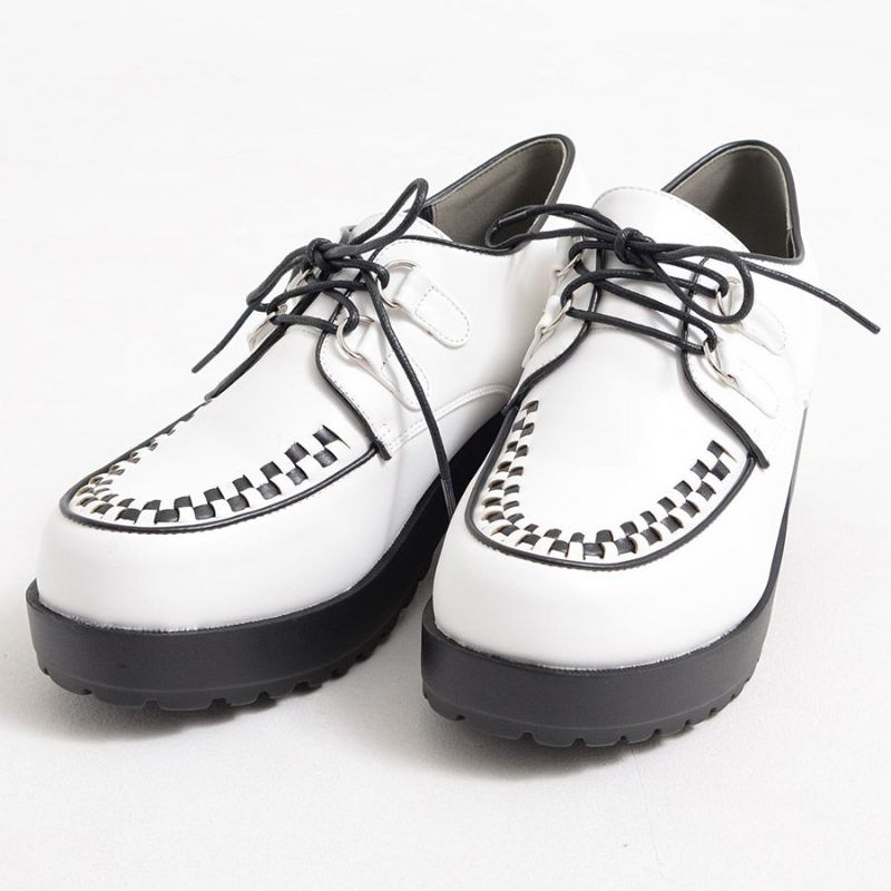 シンプルなプレーントゥシューズと違いつま先部分を編み込んでる為、デザイン性があります。