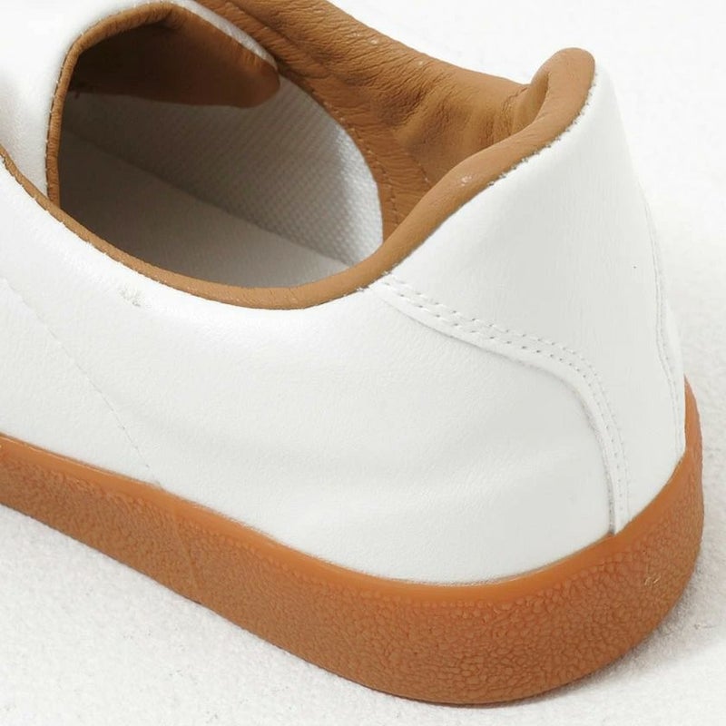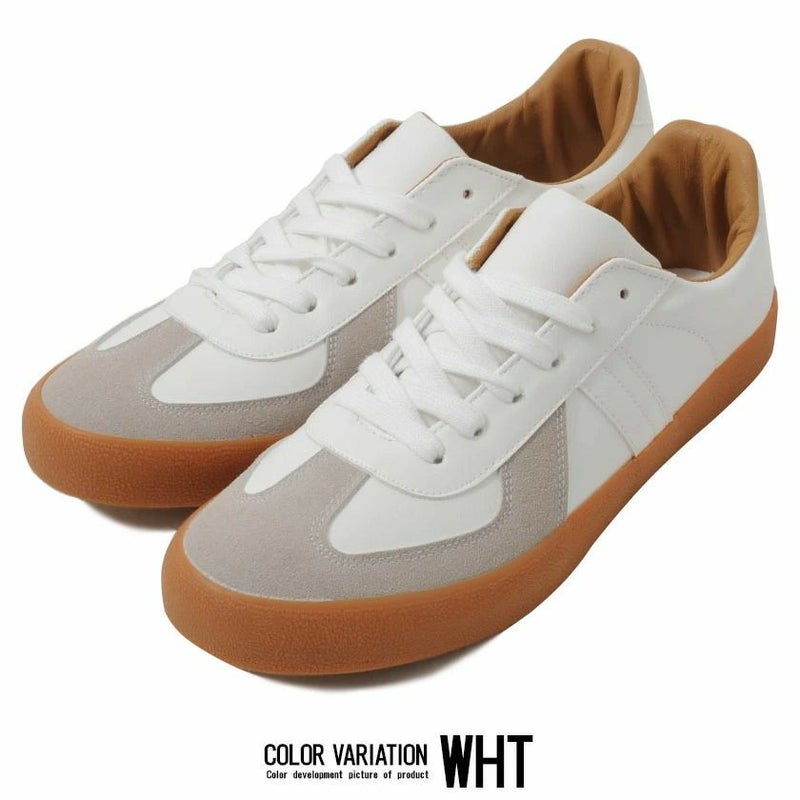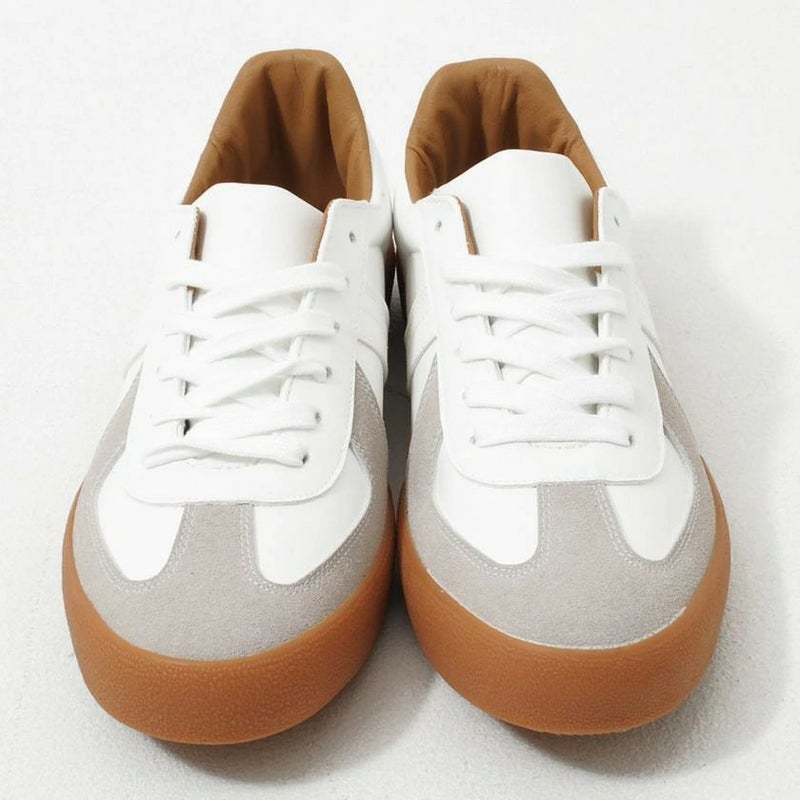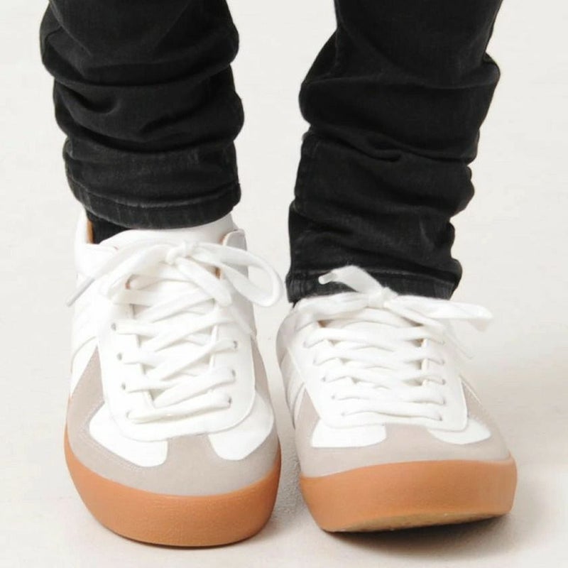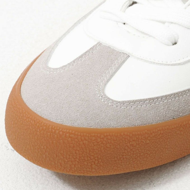 アッパーからソールまで落ち着いたカラーリングでまとめてた配色とガムソールが特徴的なレースアップスニーカー。