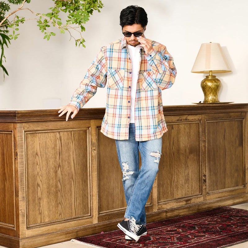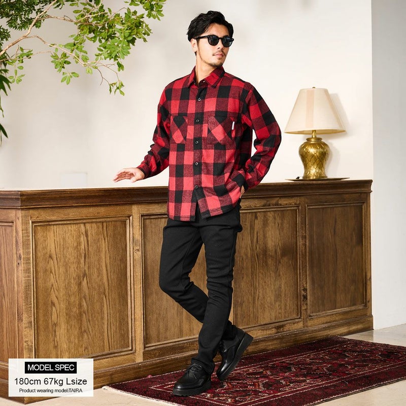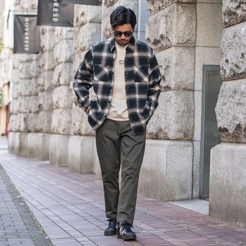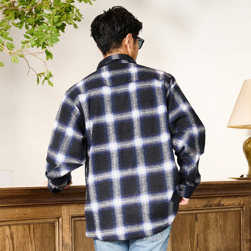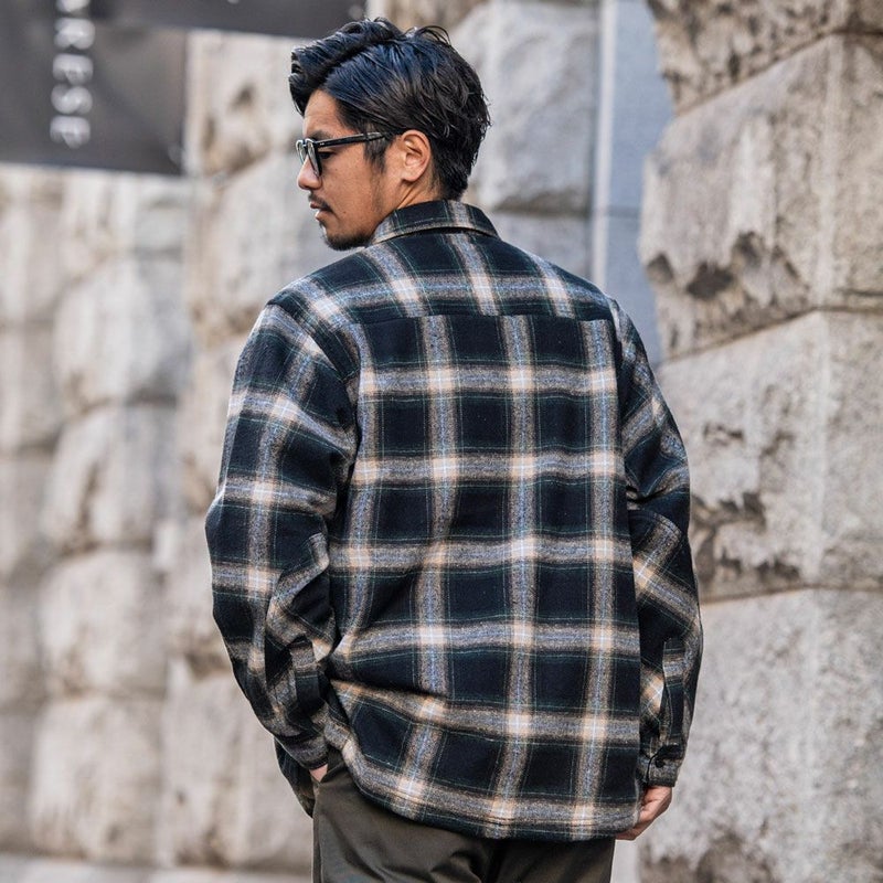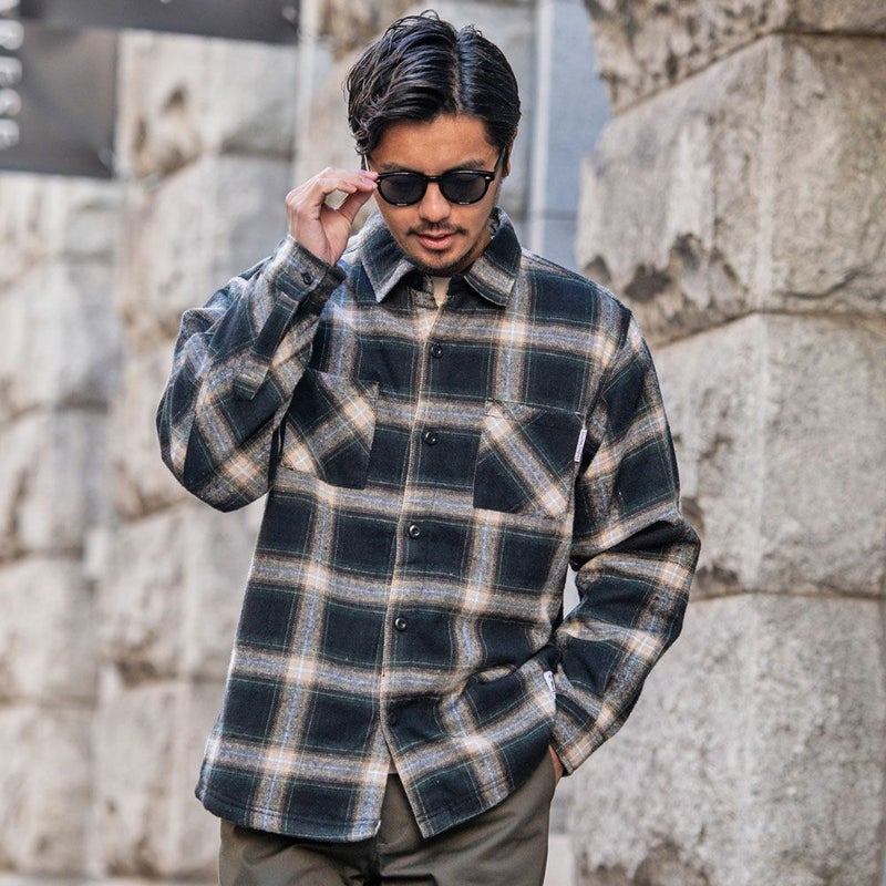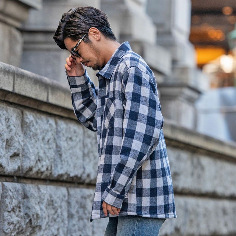 寒い季節でも快適に過ごせる機能性に加え、先染めチェックツイルを使用した大胆なチェック柄が目を引き、カジュアルながらも存在感のある仕上がりになっています。