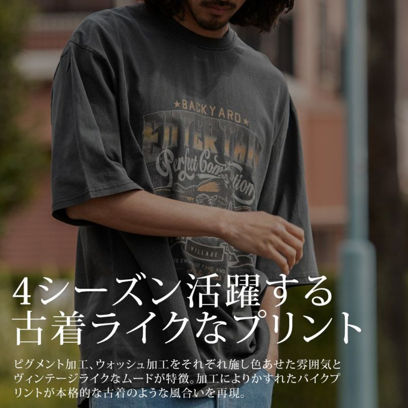 加工によりかすれたバイクプリントがフェード感のある本格的な古着のような風合いを再現してくれます。