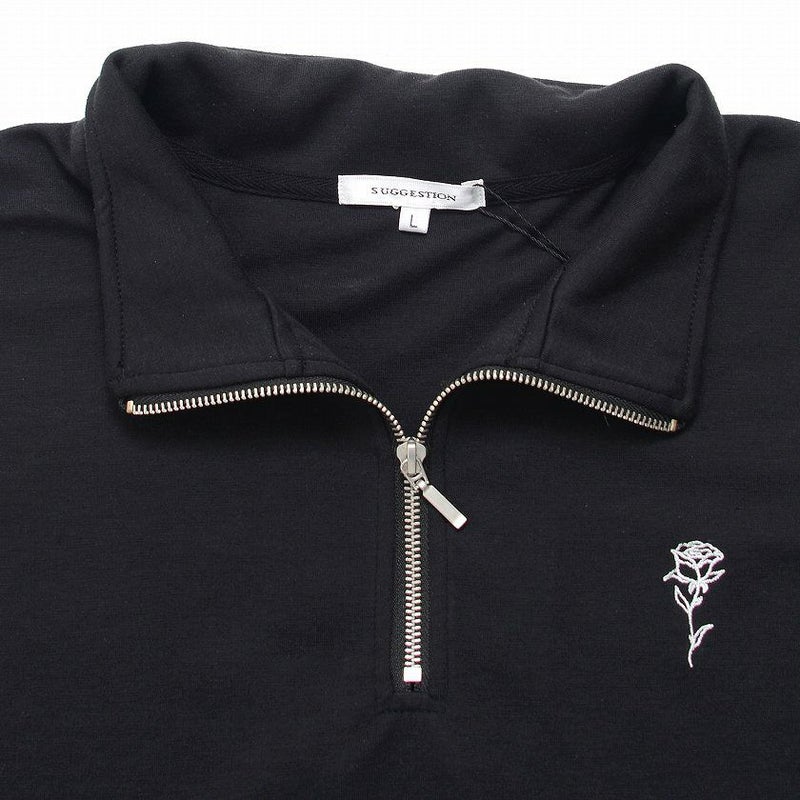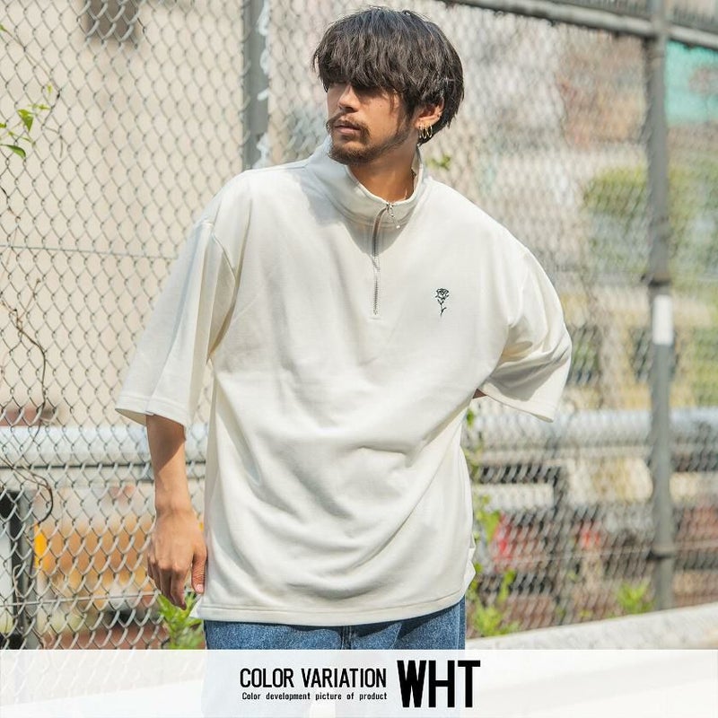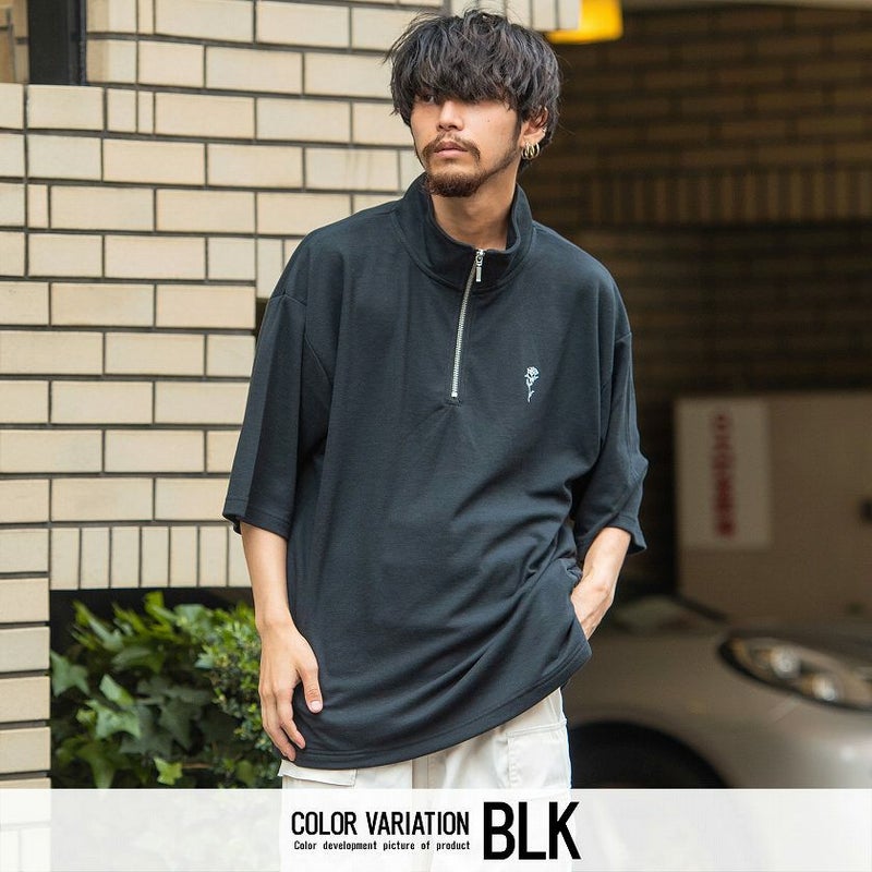 ハーフジップ Tシャツ メンズ 半袖 大きいサイズ トップス スタンドカラー バラ 薔薇 刺繍 ゆったり ユニセックス 白 黒 M L 服 父の日 春 夏 春服 夏服 ファッション メンズファッション Bitter select(ビターセレクト)ハーフZIPスタンドポンチ半袖シャツ/全3色