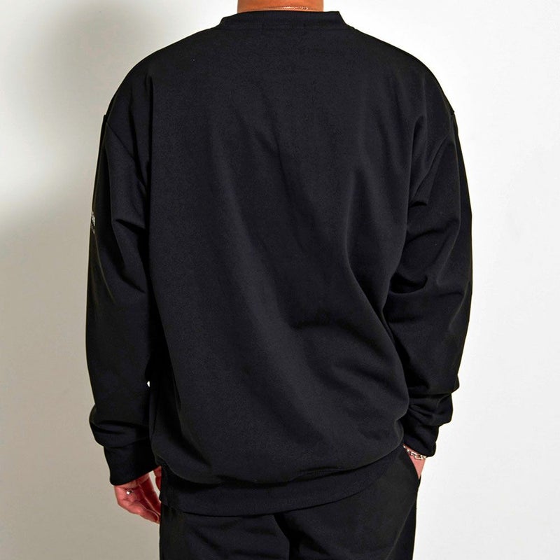 クルーネック ストレッチダンボール立体感のあるロゴ刺繍とプリントが、視覚的なインパクトを与え、他にはないユニークなデザインを演出。