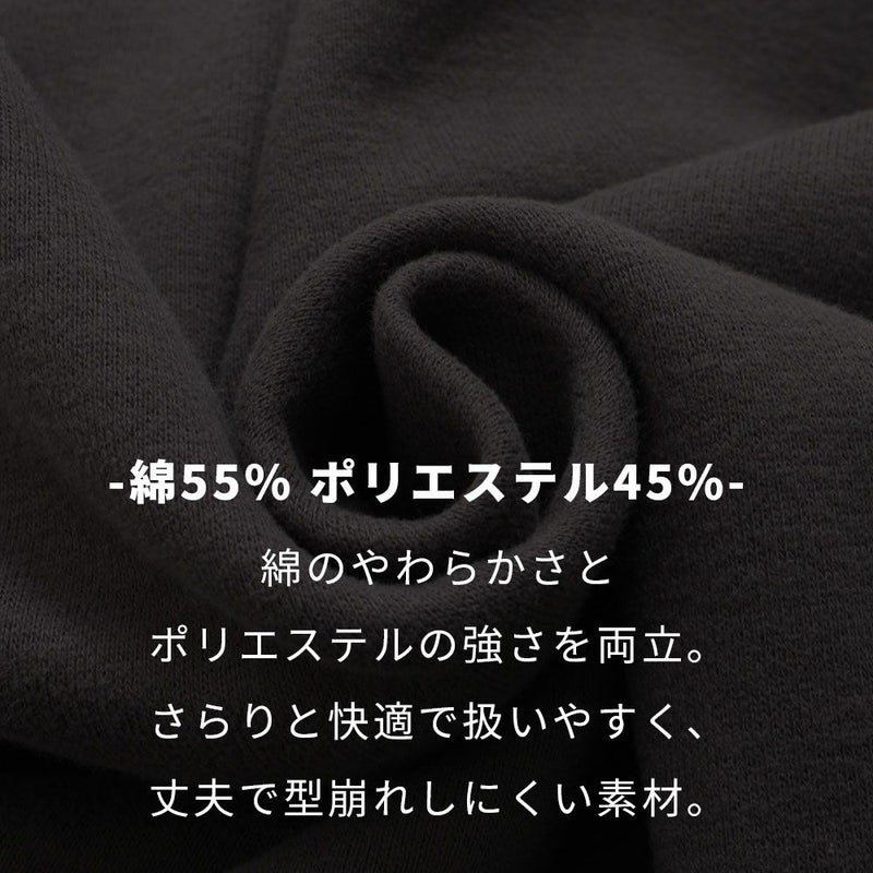 裏起毛仕立てで保温性にも優れており、秋冬のデイリーユースやルームウェアとしても快適に着用可能です。