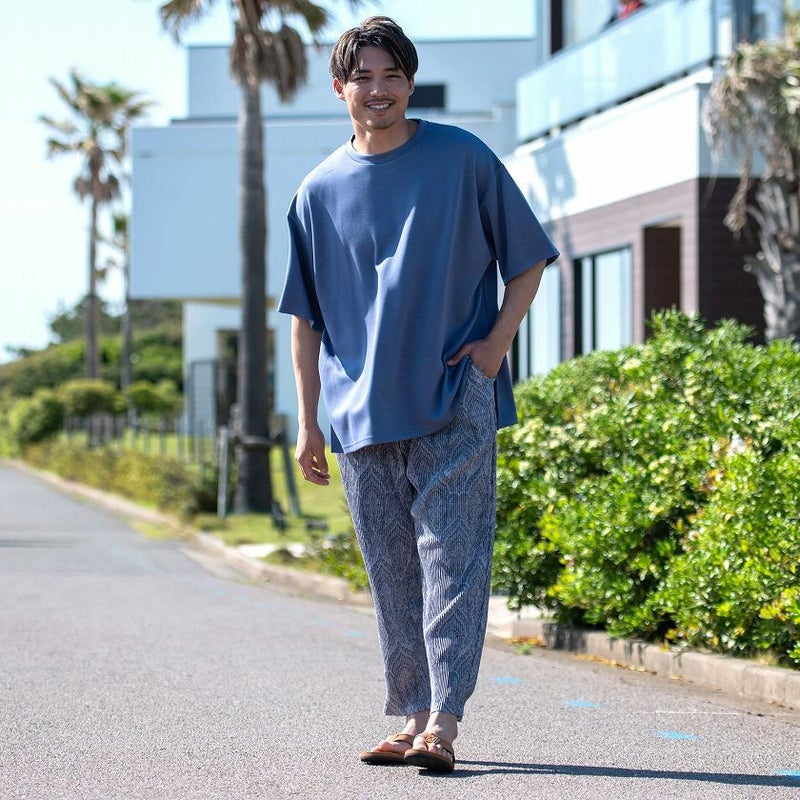全体的にリラックス感のあるシルエットなので、大人のカジュアルウェアとしてはもちろん部屋着(ルームウェア)としてもお使いいただけます。