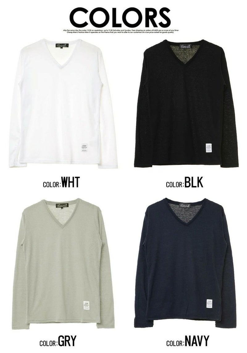 Tシャツ メンズ ブランド 長袖 無地 ロンt 長袖Tシャツ シンプル トップス 大人 カジュアル ファッション インナー 重ね着 レイヤード 黒 白 紺 ブラック グレー ホワイト Vネック 【SALE/セール】CavariA(キャバリア)天竺Vネック長袖Tシャツ/全4色