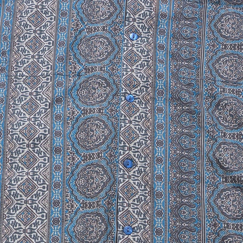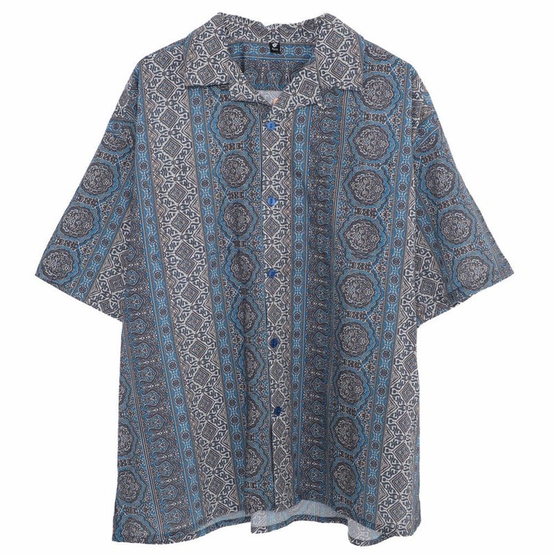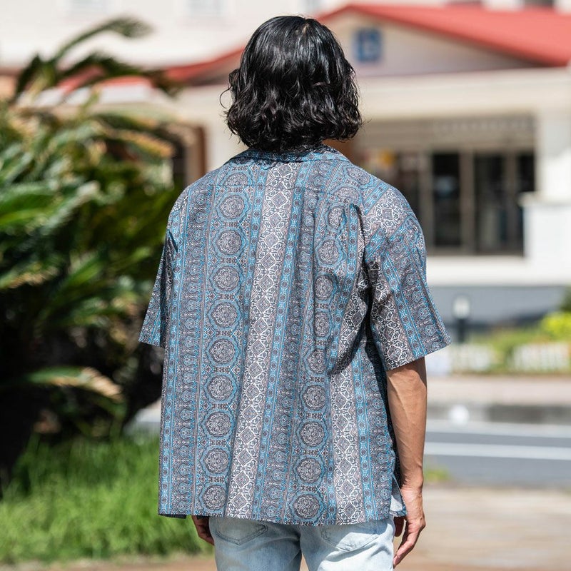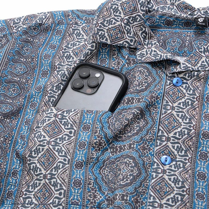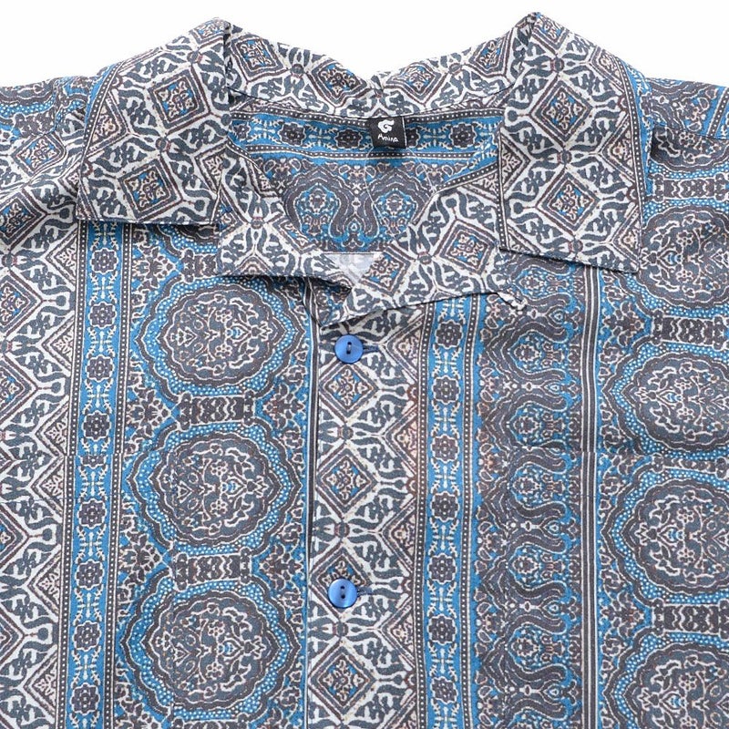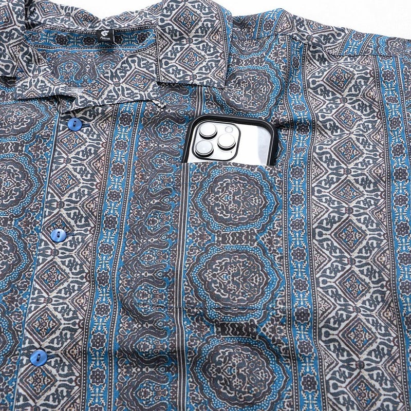 インドの伝統技法アジュラックプリントがモチーフのメンズシャツ。
