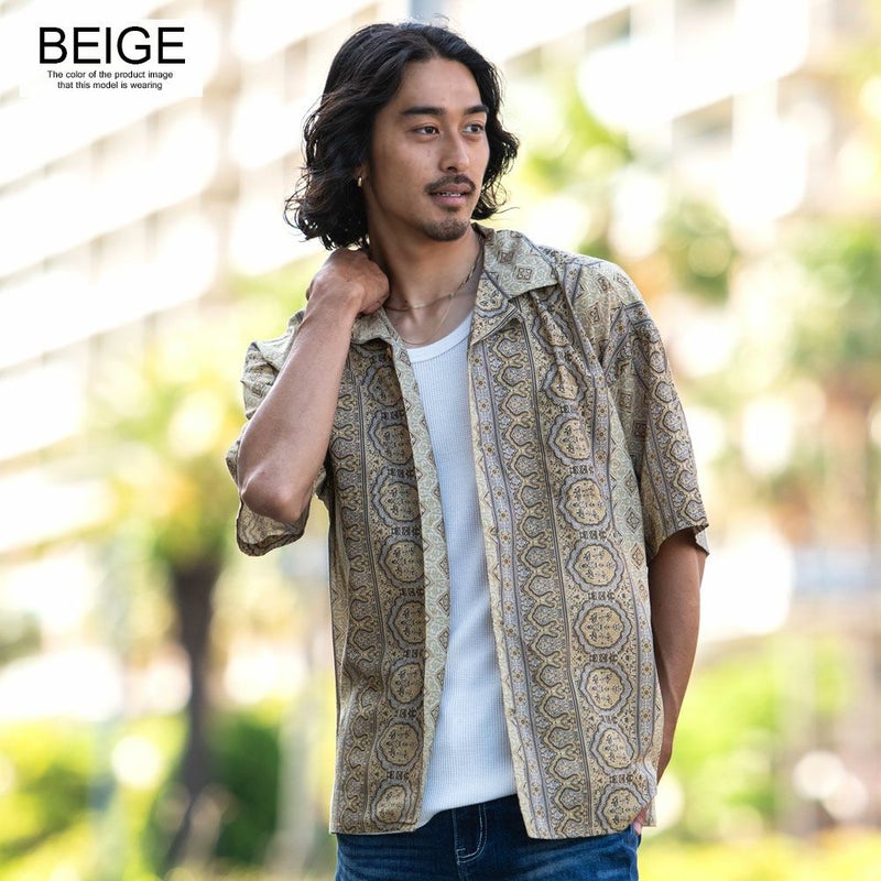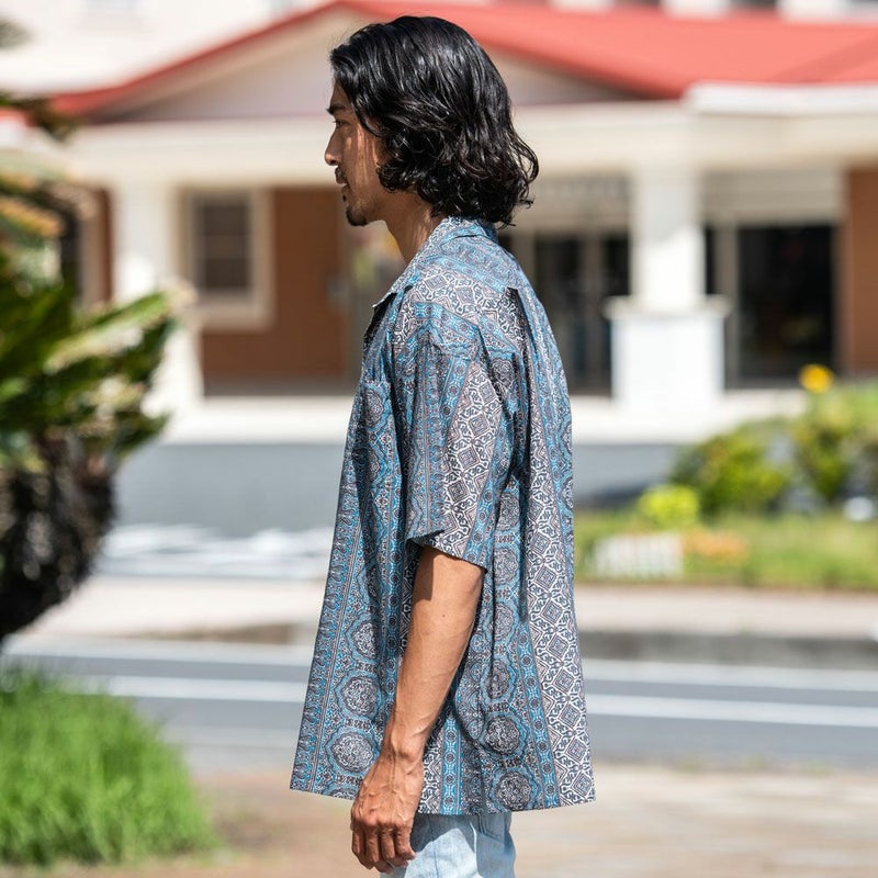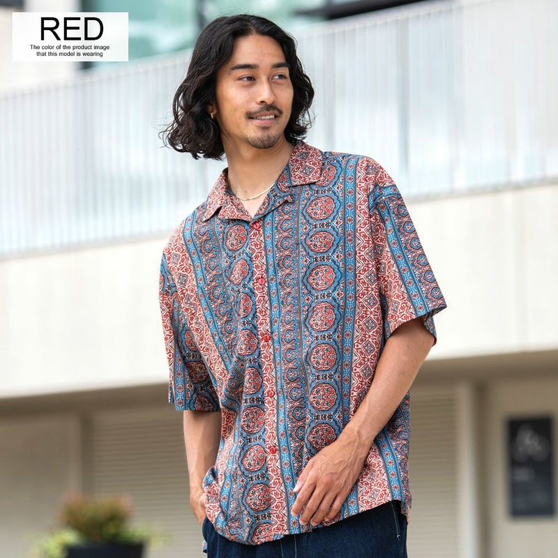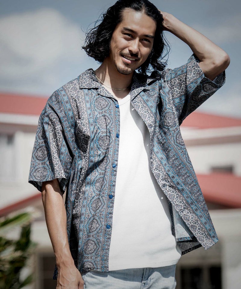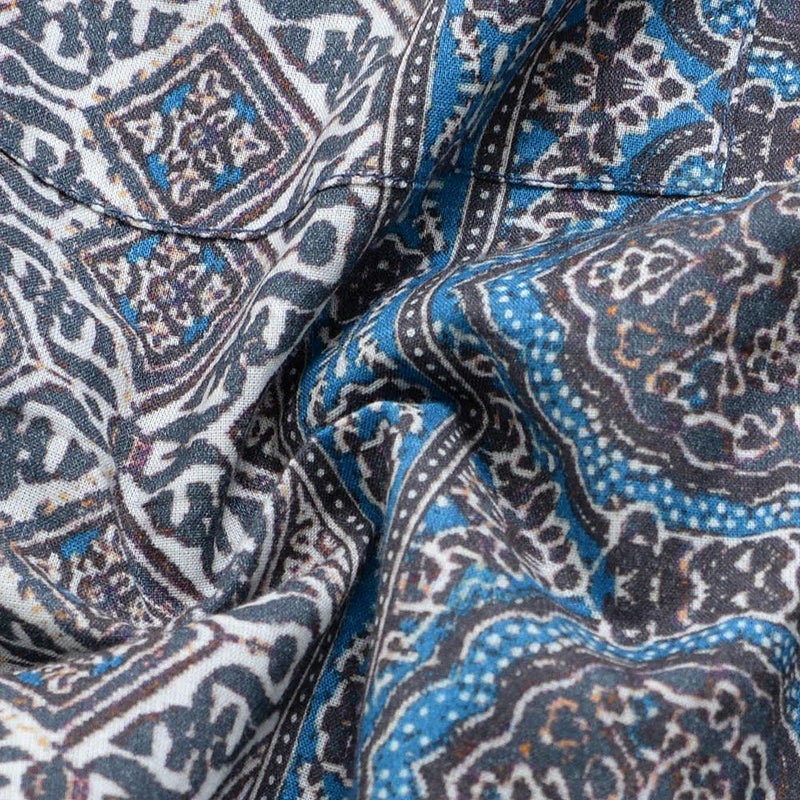 インドの伝統技法アジュラックプリントがモチーフのメンズシャツ。