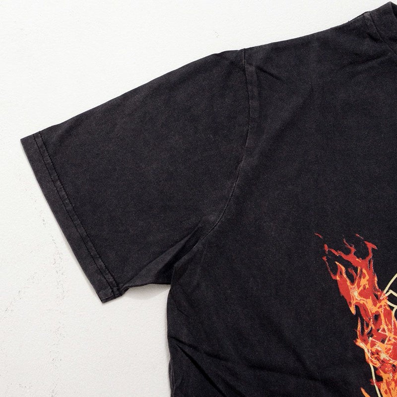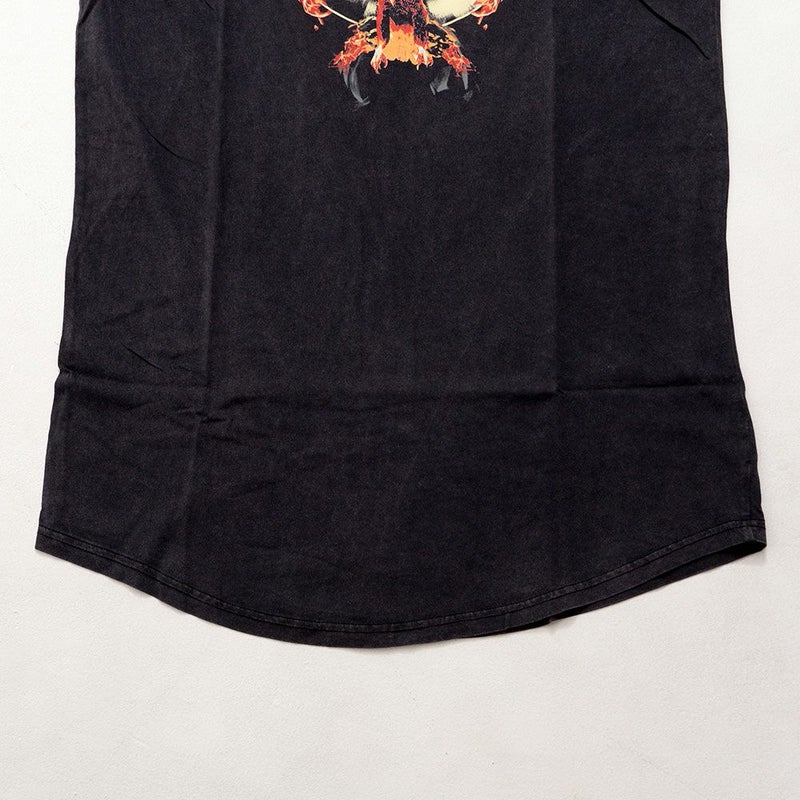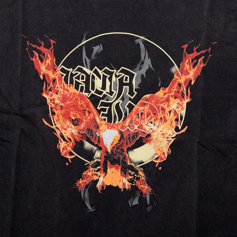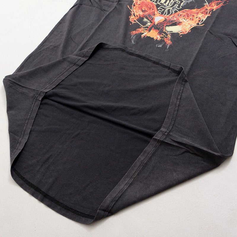中央に大きくプリントされた炎のフェニックスとロゴが圧倒的なインパクトを放ち、モード・ロック・ストリートの境界を超えた一着に。