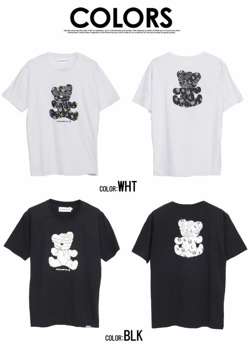 フロントとバックにほどこしたポップで可愛いクマモチーフデザインがインパクト抜群なデザインの半袖Tシャツ。