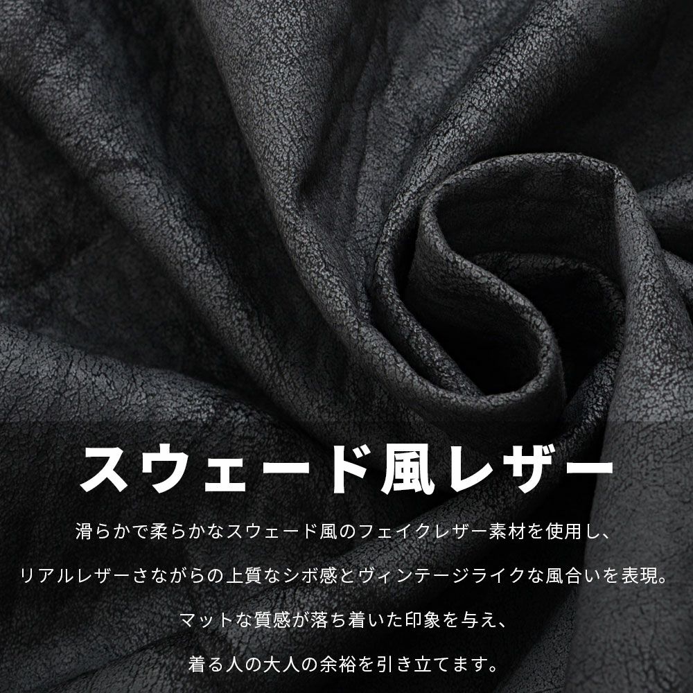他の画像を見る 滑らかで柔らかなスウェード風のフェイクレザー素材を使用し、リアルレザーさながらの上質なシボ感とヴィンテージライクな風合いを表現。 BENUSTA(ベヌスタ)スウェード風加工ジャケット/全1色 販売価格 ¥ 9,790 税込 カートに入れる お気に入りに登録する