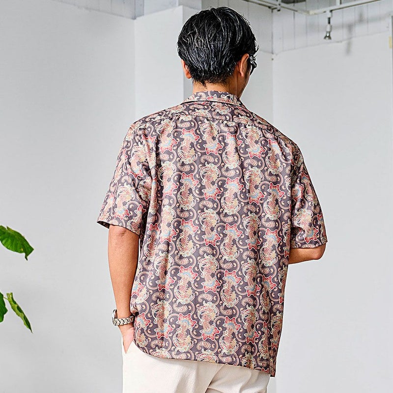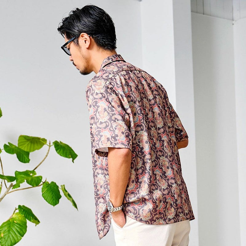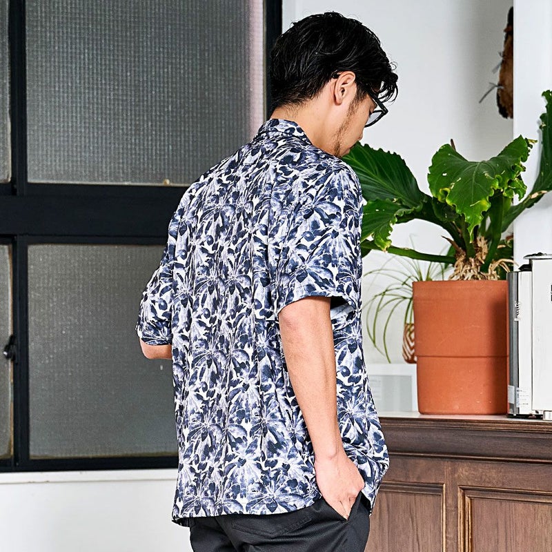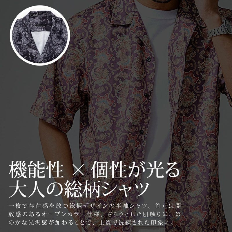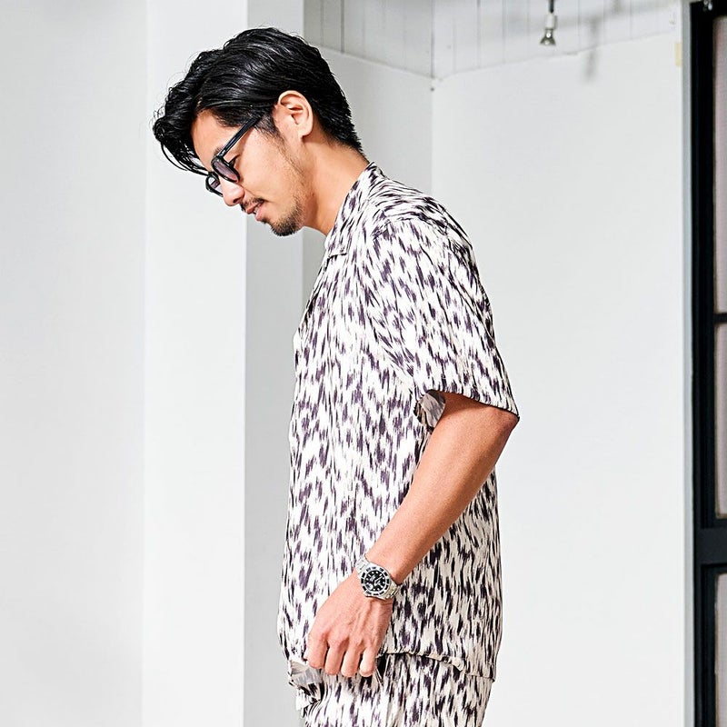 【機能性×個性が光る、大人の総柄オープンカラーシャツ】