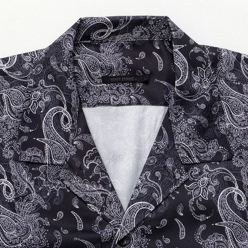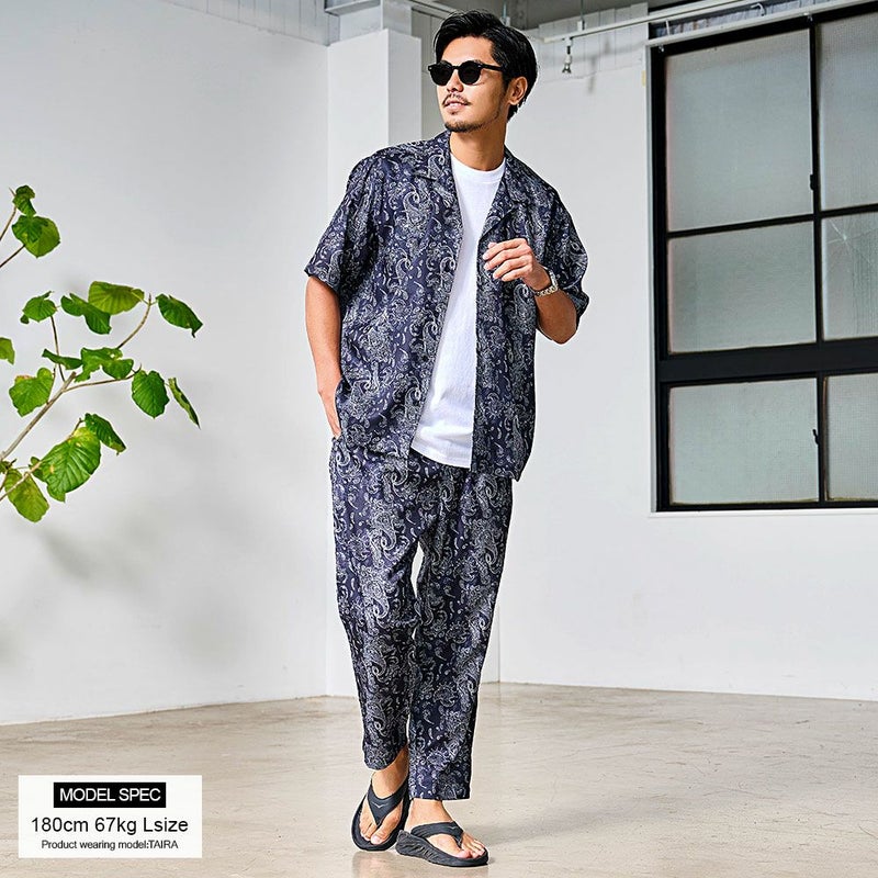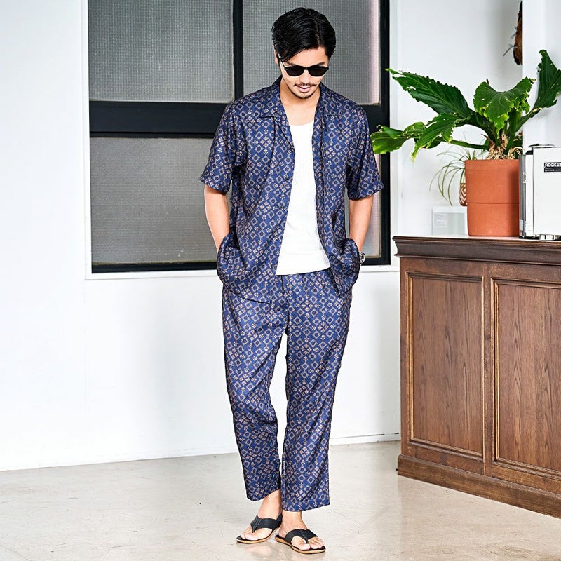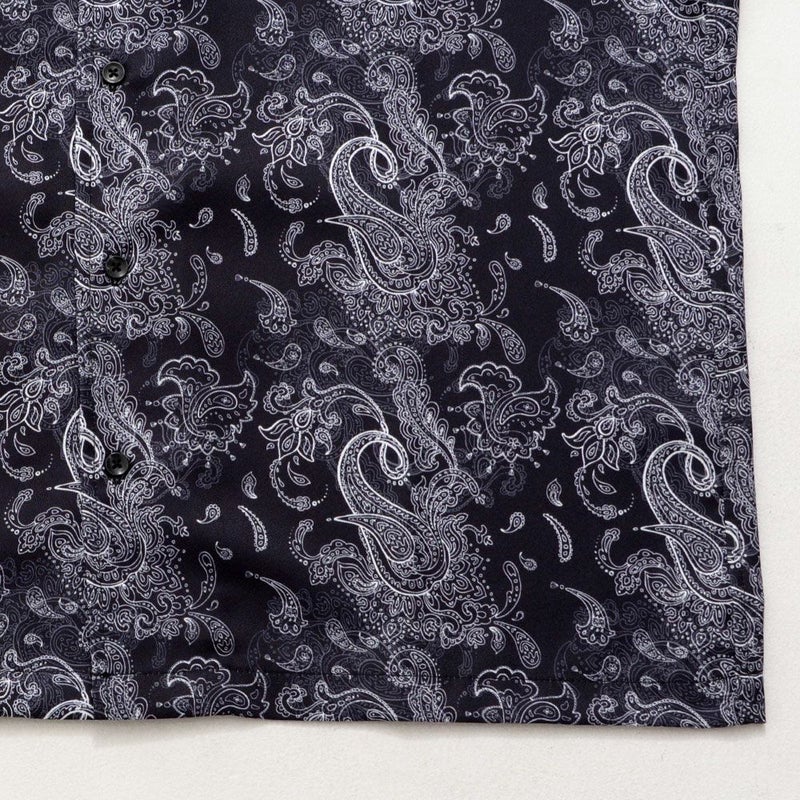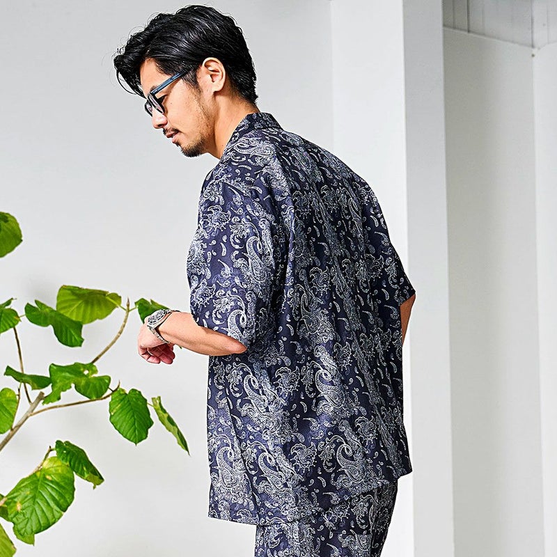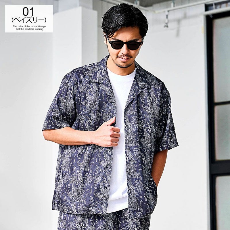 【機能性×個性が光る、大人の総柄オープンカラーシャツ】