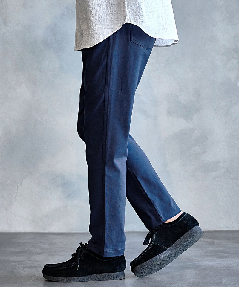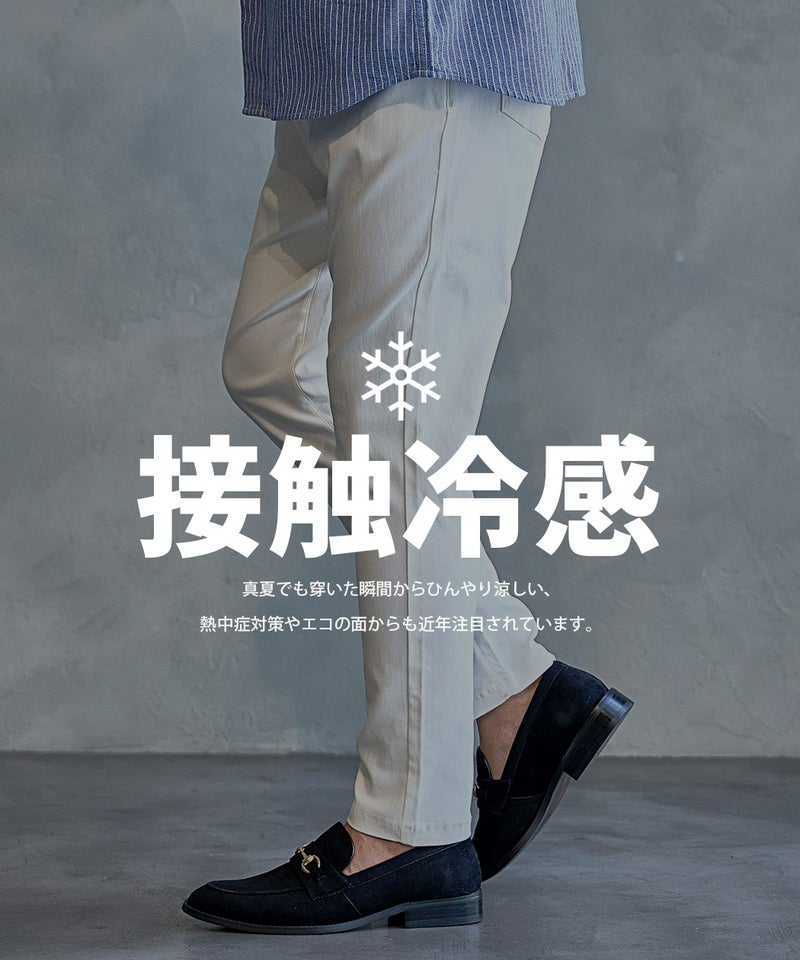 穿いた瞬間からひんやりとする接触冷感生地を採用したレギンススキニーパンツ。