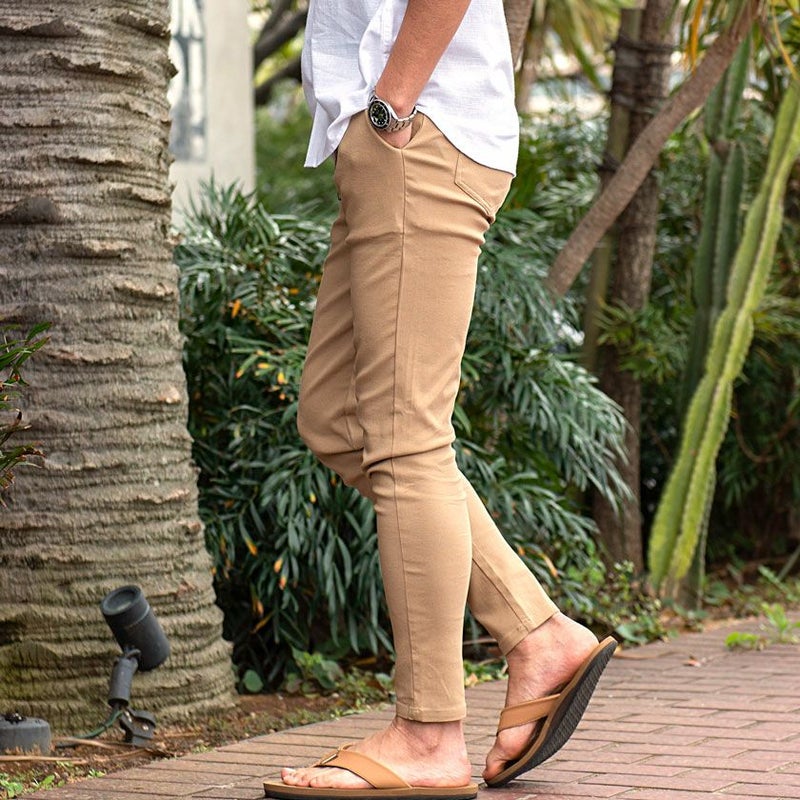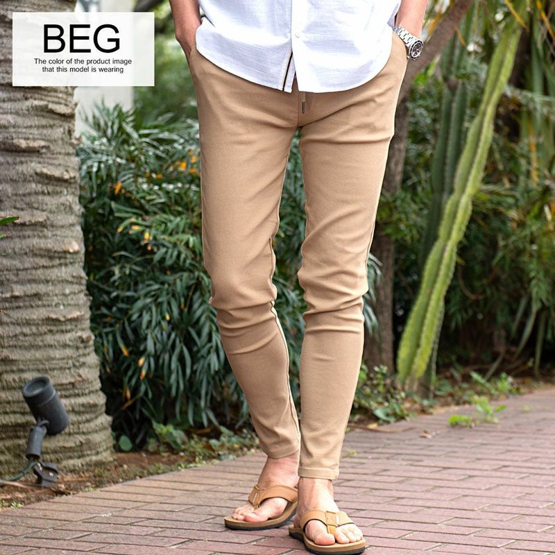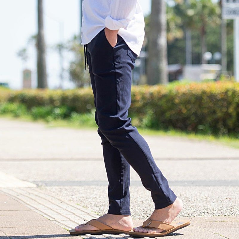 細身ながらゴムウエスト&ドローコード内蔵のイージー仕様で、体にフィットするストレスのない穿き心地に仕上げました。