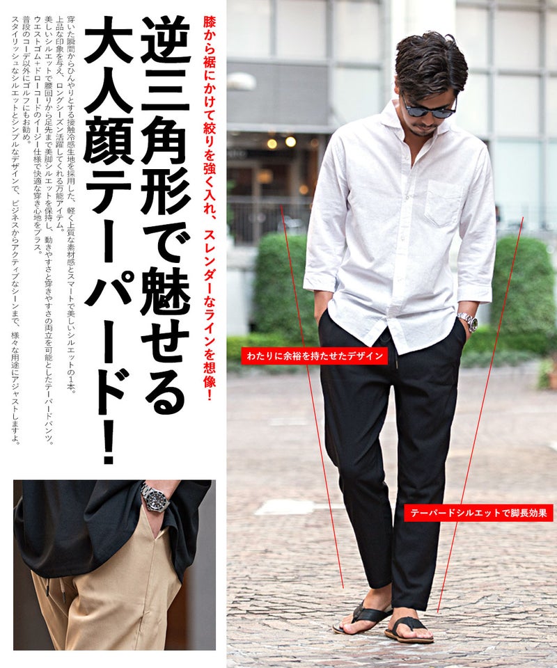 見た目はスッキリとスマートでありながら、着用感はリラックスという大人のための快適パンツです。