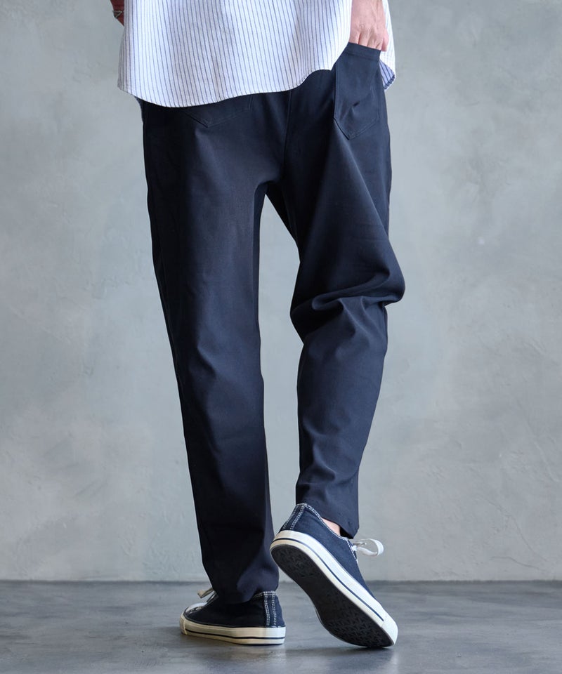 さらに、ウエストはゴム+ドローコード仕様で、ベルトいらずのイージーな穿き心地。
