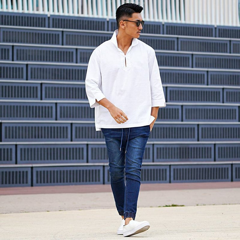 穿いた瞬間ひんやりと冷たい接触冷感生地を採用したジョガーパンツ。