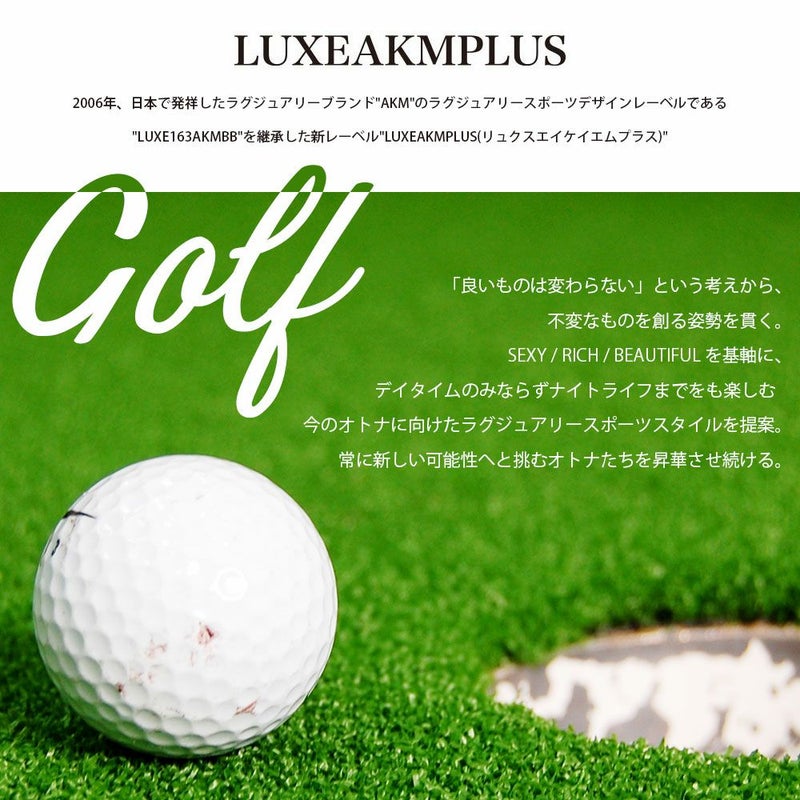 2006年、日本で発祥したラグジュアリーブランド"AKM"のラグジュアリースポーツデザインレーベルである"LUXE163AKMBB"を継承した新レーベル"LUXEAKMPLUS(リュクスエイケイエムプラス)"。