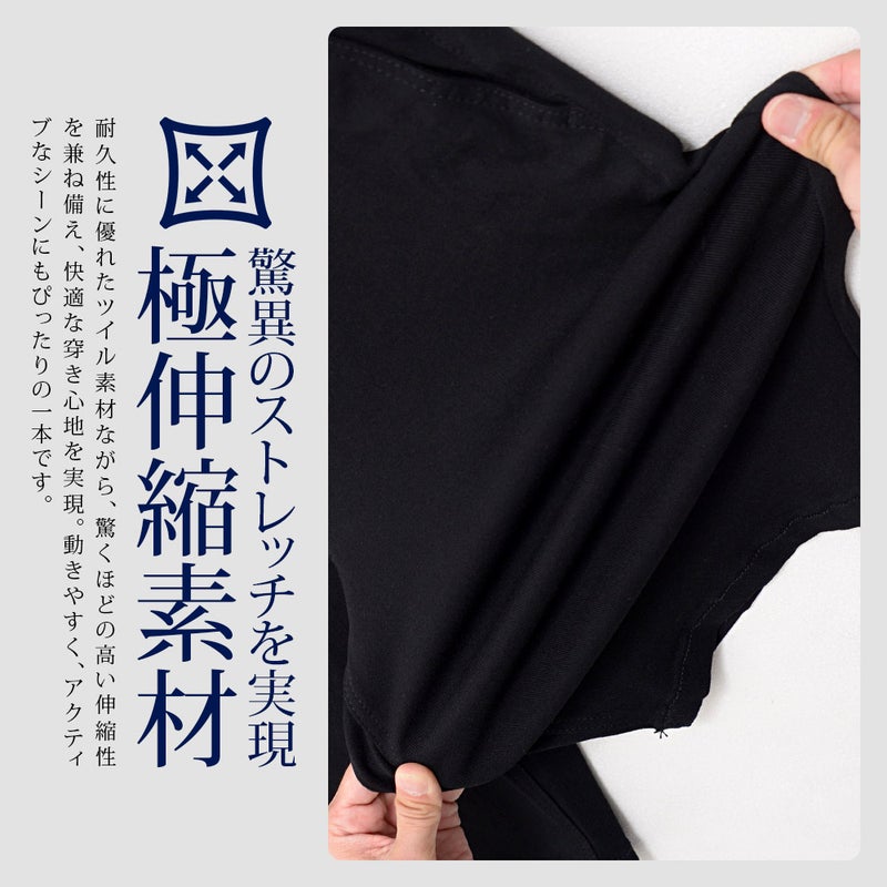 耐久性に優れたツイル素材ながら、驚くほどの高い伸縮性を兼ね備え、快適な穿き心地を実現。