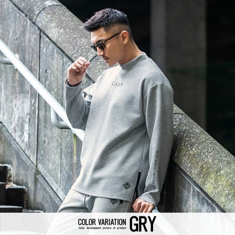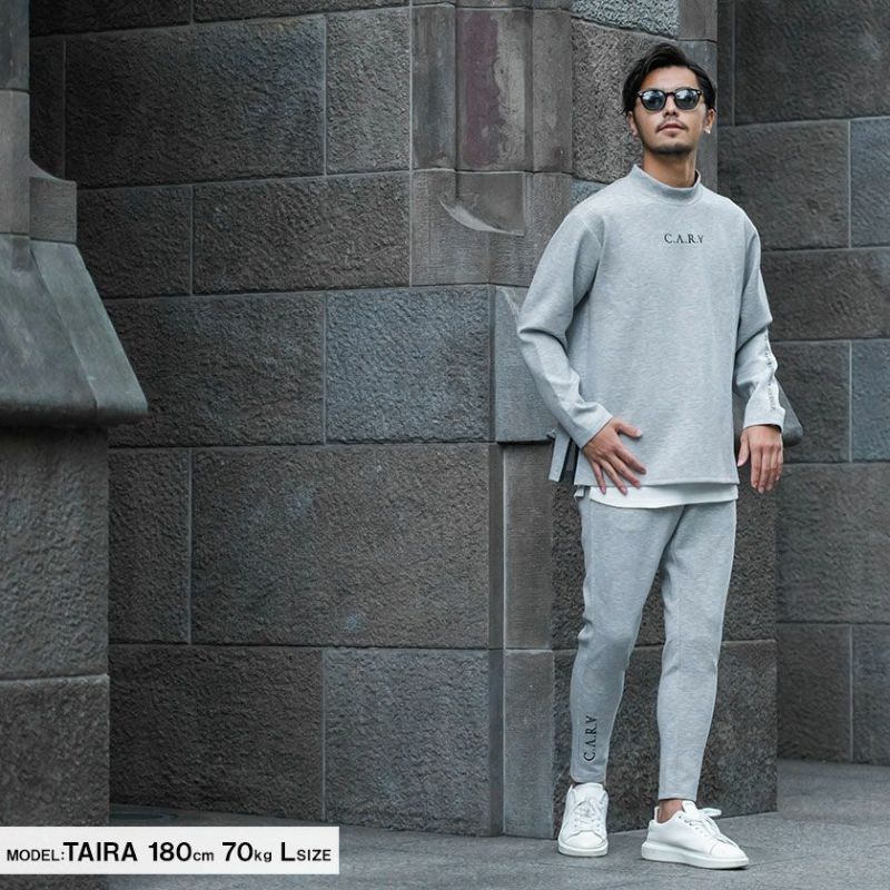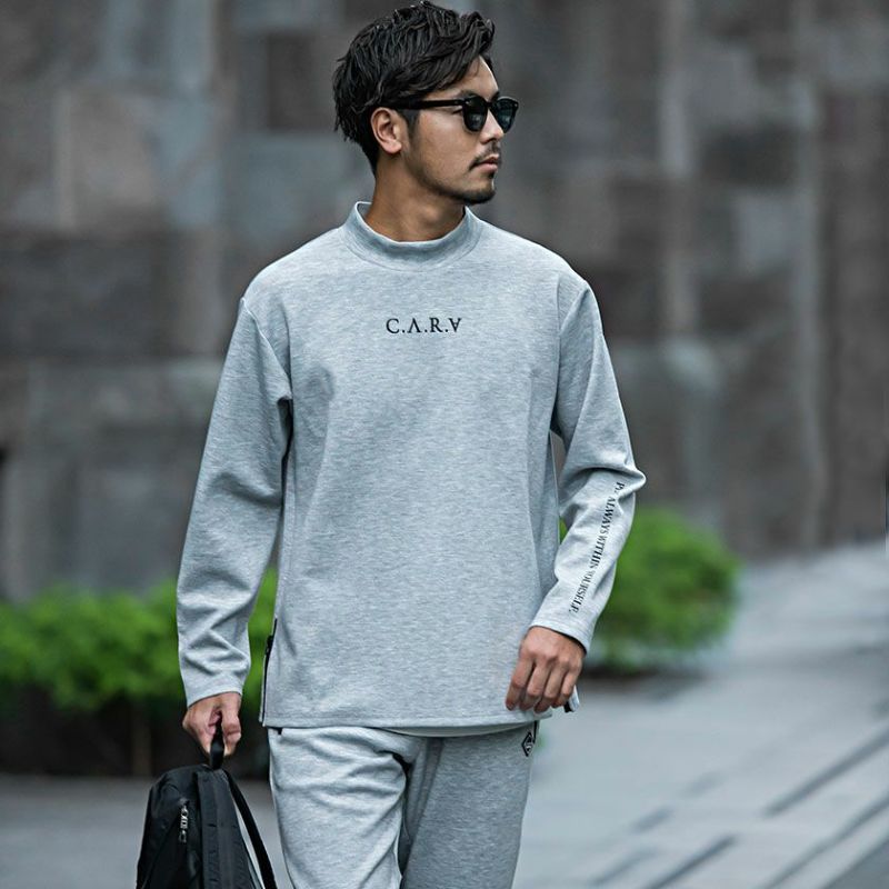 セットアップ メンズ 上下セット ゴルフ ゴルフウェア ゴルフウエア トレーニングウェア ジム スポーツ ルームウェア 部屋着 トレーナー パンツ ブランドロゴ 刺繍 C.V.R.A(シーブイアールエー)別注ロゴ刺繍入りモックネックトレーナー×止水ジップパンツセットアップ/全2色