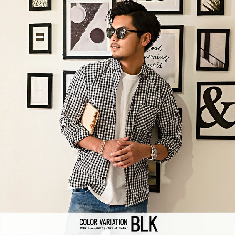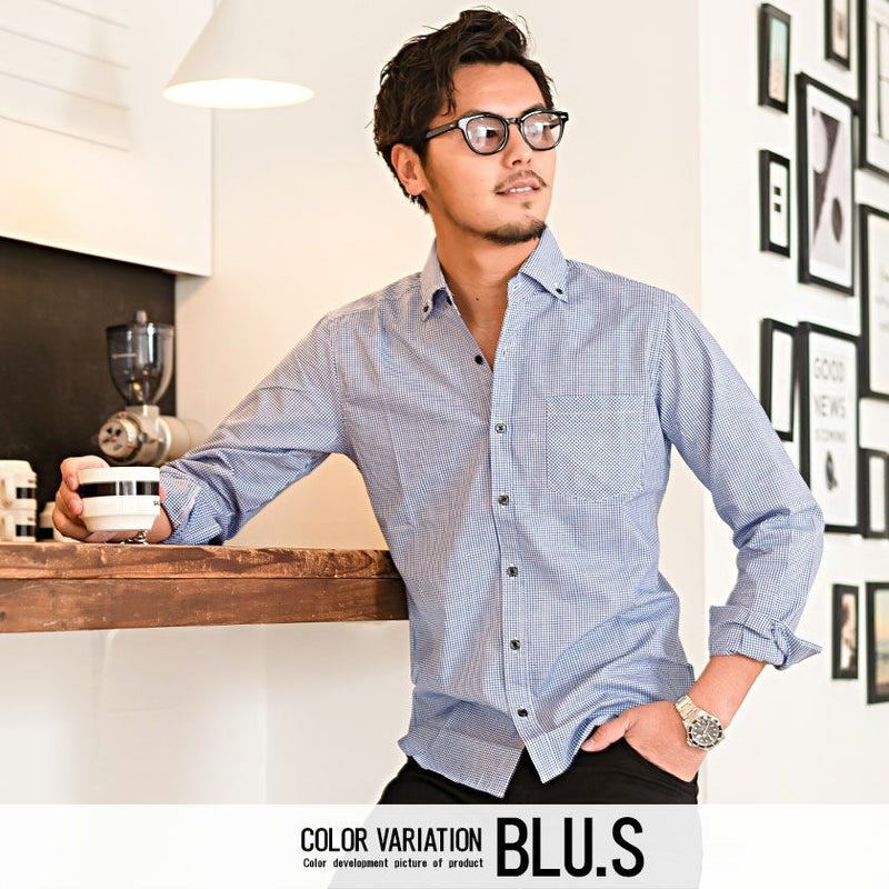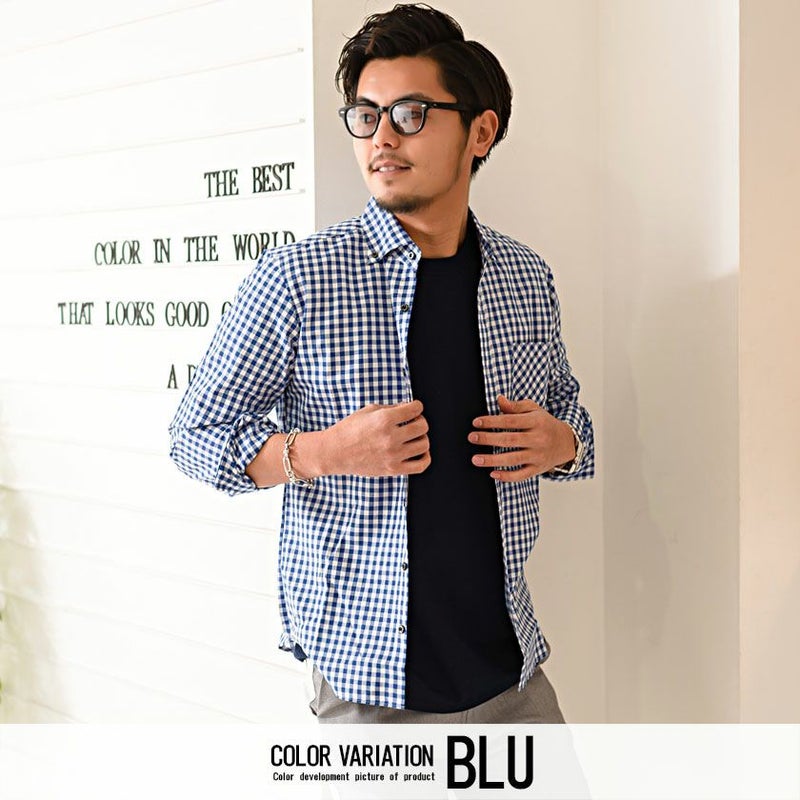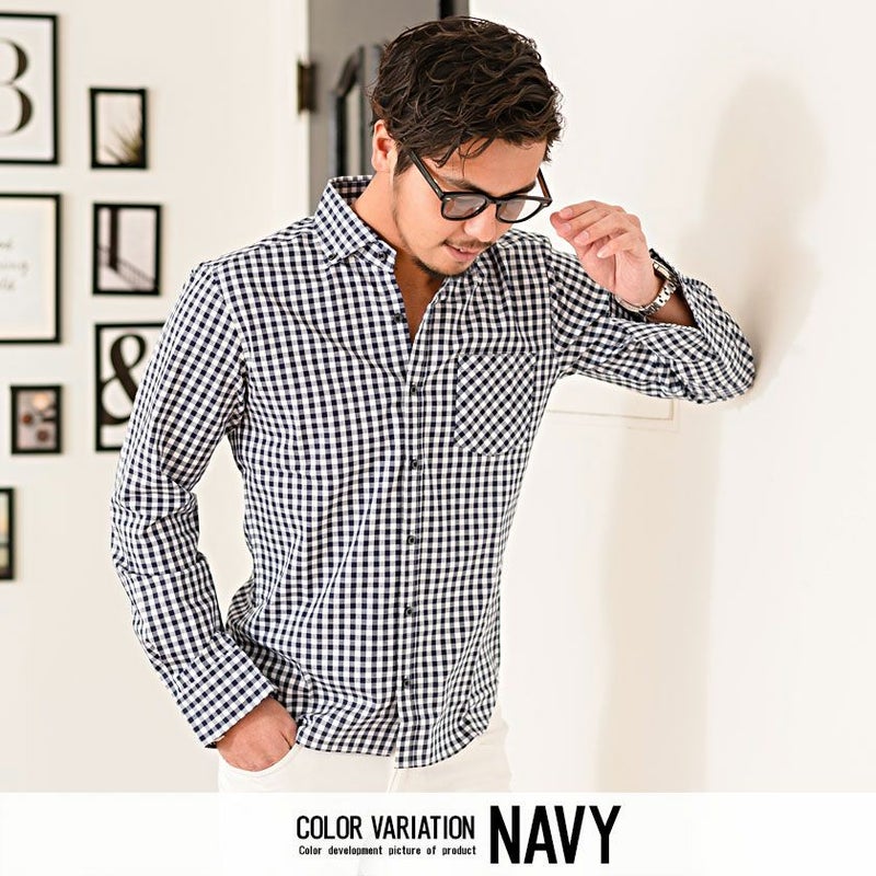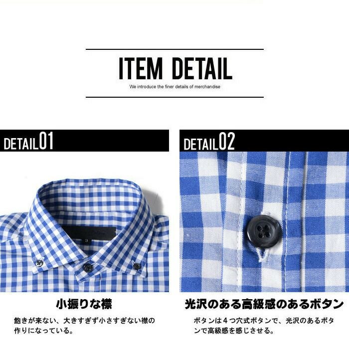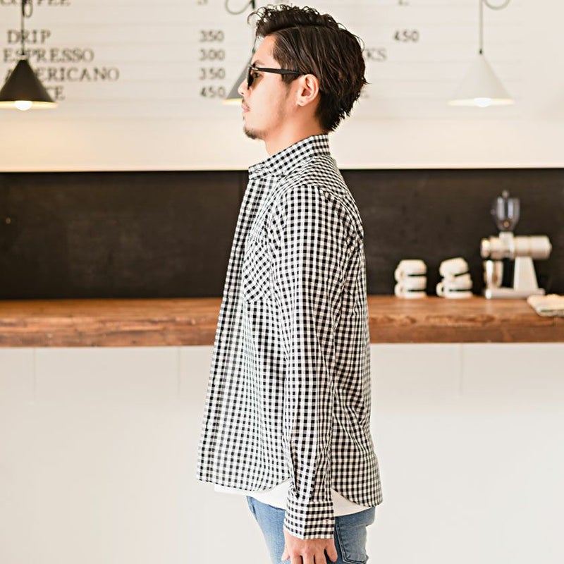 シンプルで清潔感のあるシャツ。ビジネスにもカジュアルにも使える万能アイテム。 GarsonWave(ギャルソンウェーブ)ギンガムチェックワイドカラーボタンダウンシャツ/全8色
