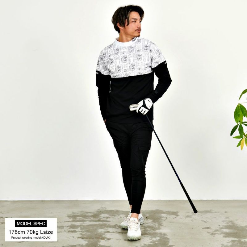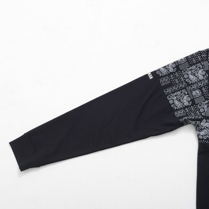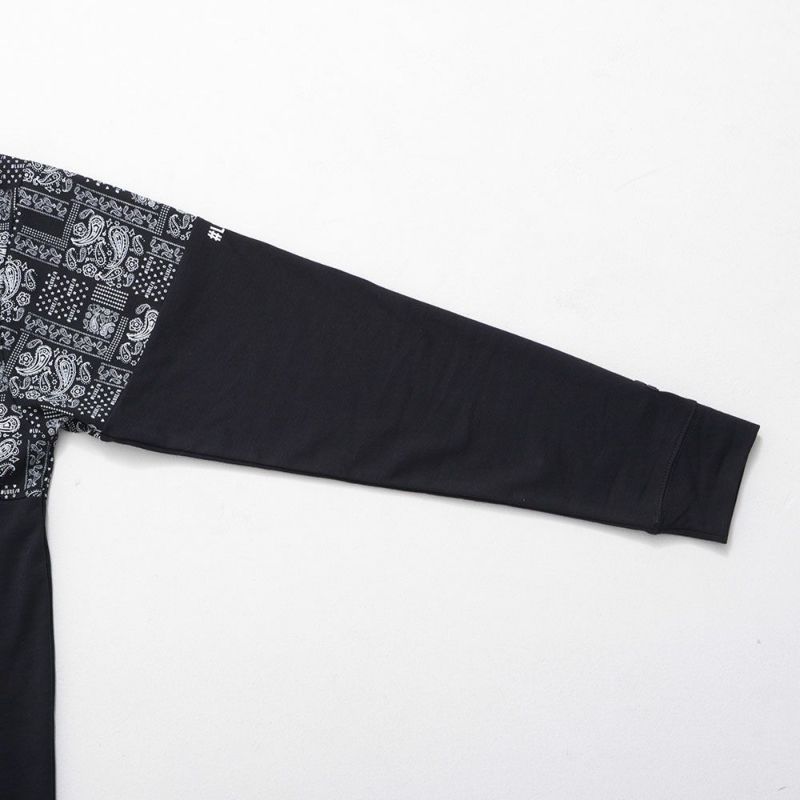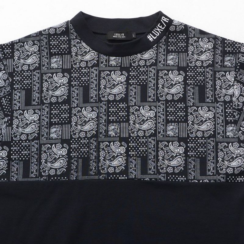 ブランドオリジナルのペイズリー柄を使用し、ボディの上下を切り替えたバイカラーデザインが目を惹くモックネックカットソー。