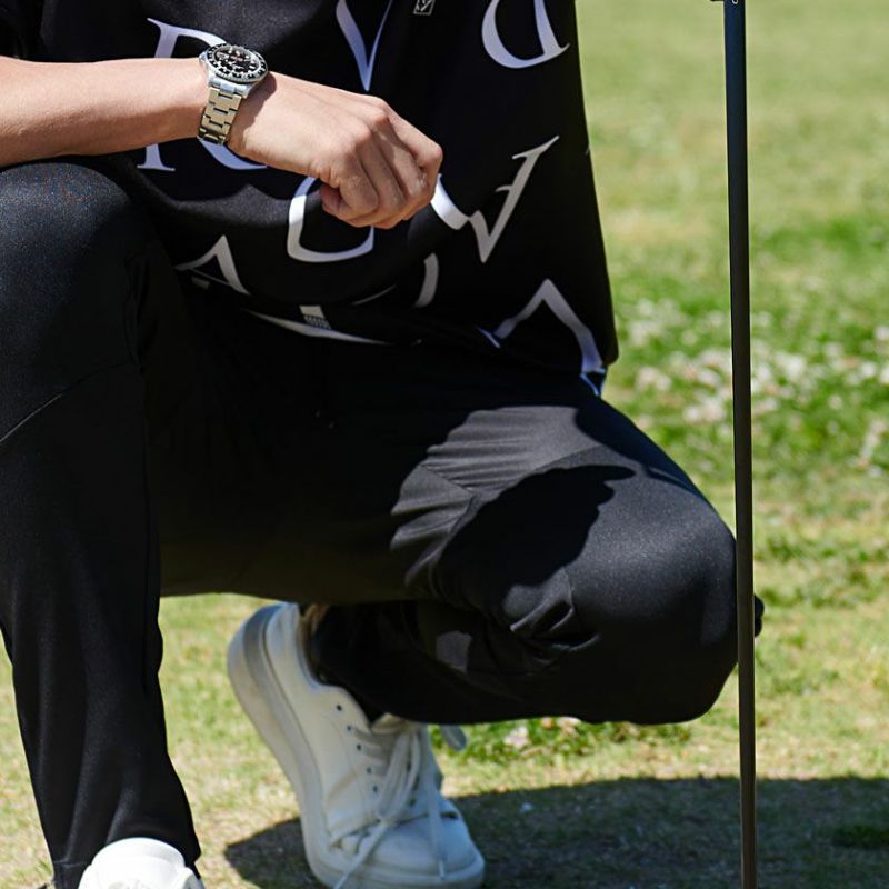 今回のゴルフパンツはジャージより肉厚なポンチ素材を使用し、綺麗なテーパードシルエットに仕立てました。