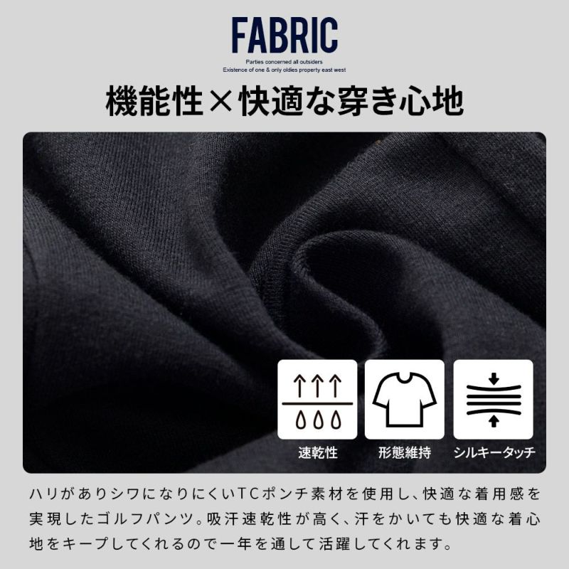 ハリがありシワになりにくいTCポンチ素材を使用し、快適な着用感を実現したゴルフパンツ。