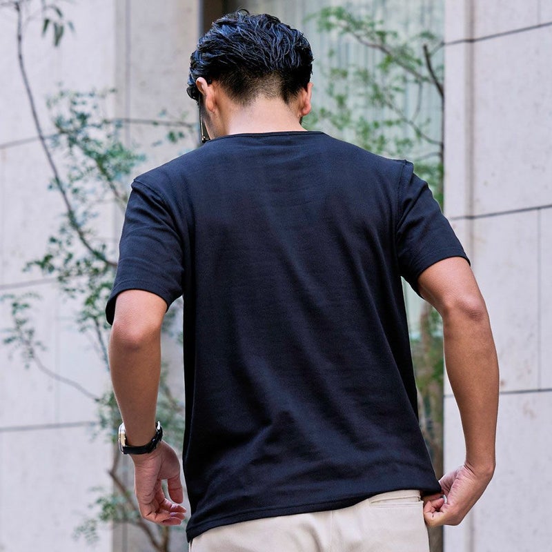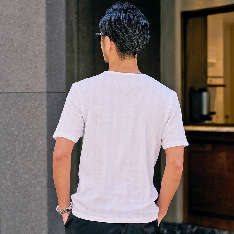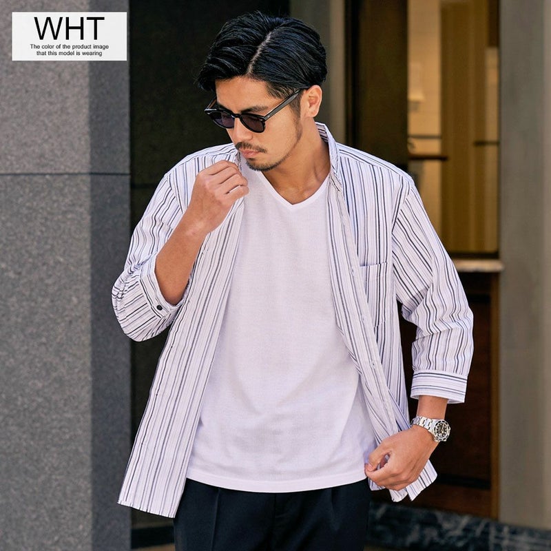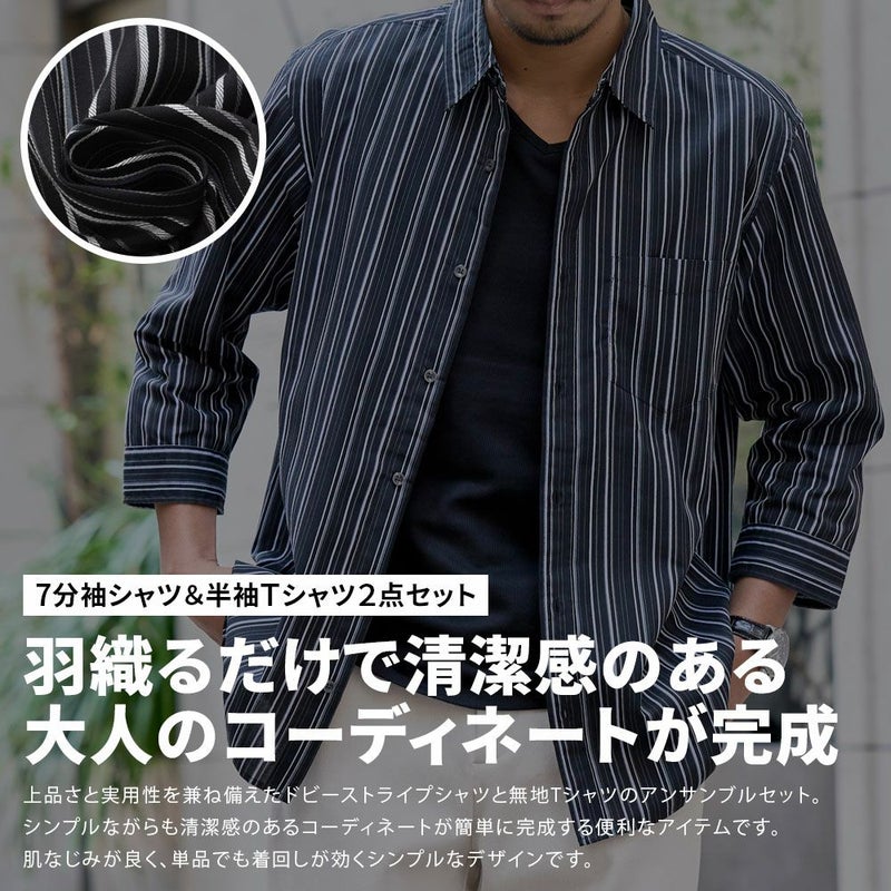 軽やかで通気性の高いドビー生地を使用した7分袖シャツと、シンプルなクルーネックTシャツの2点セットです。