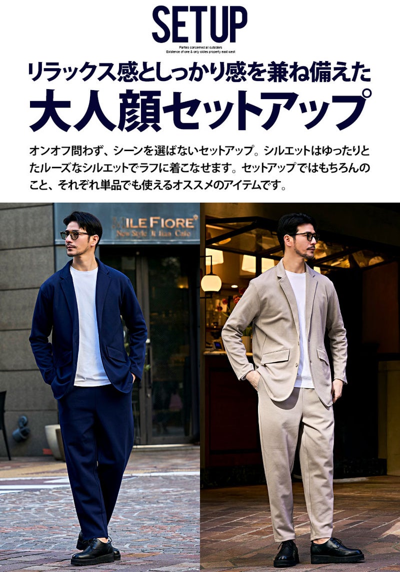セットアップとしてはもちろん、ジャケット、パンツ単体でも幅広く活躍する万能なアイテムです。