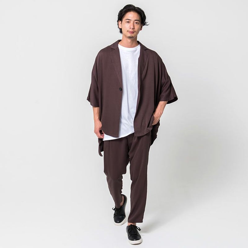 全体的にゆったりとしたサイズ感やドルマンスリーブなど、抜け感のあるラフさがスタイリッシュな印象に。