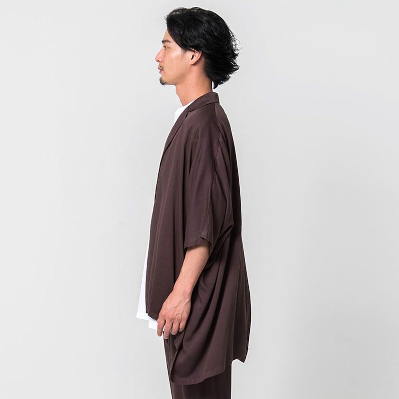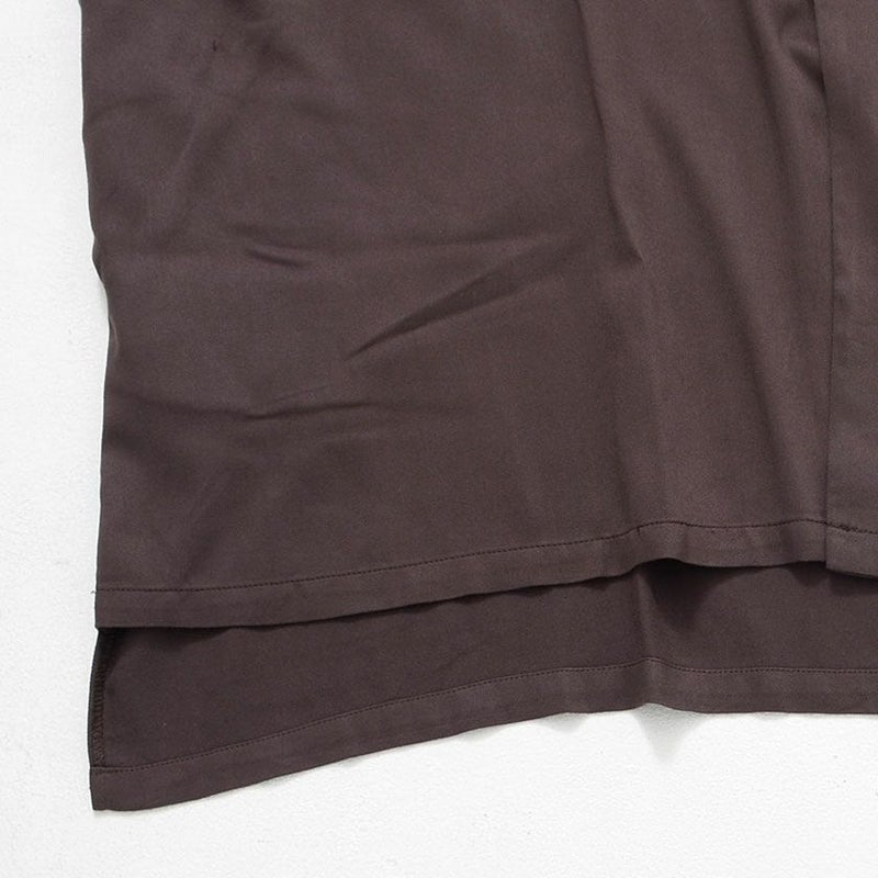 レーヨン100%のとろみ感ある滑らかで柔らかな触り心地が癖になる質感の一着。